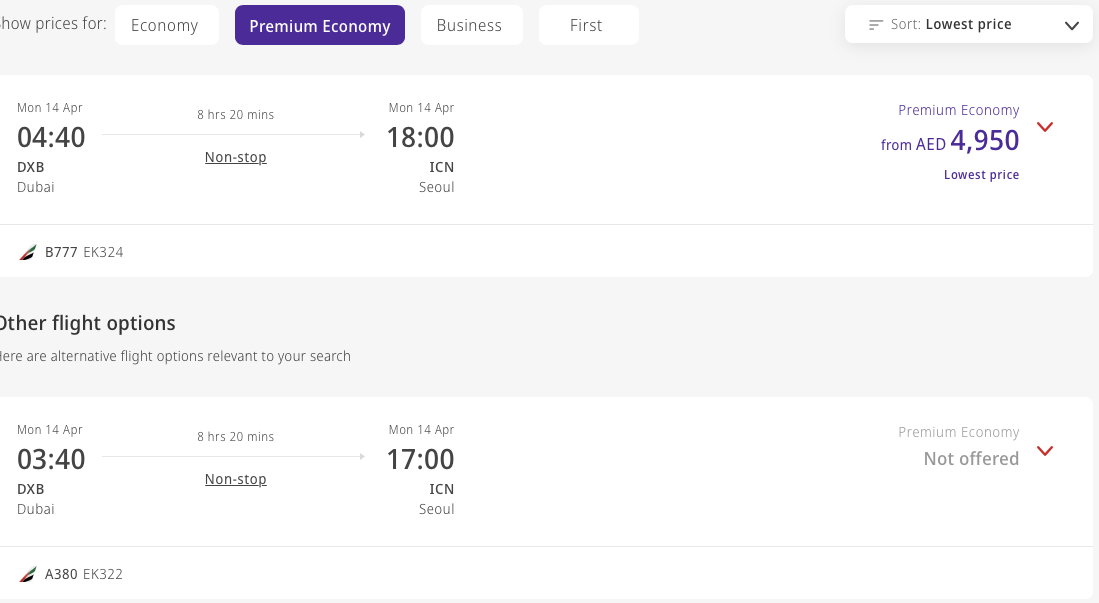 [EK] 에미레이츠, 드디어 4월 14일부터 프리미엄 이코노미석이 추가된 신형 B777 인천 노선에 투입!