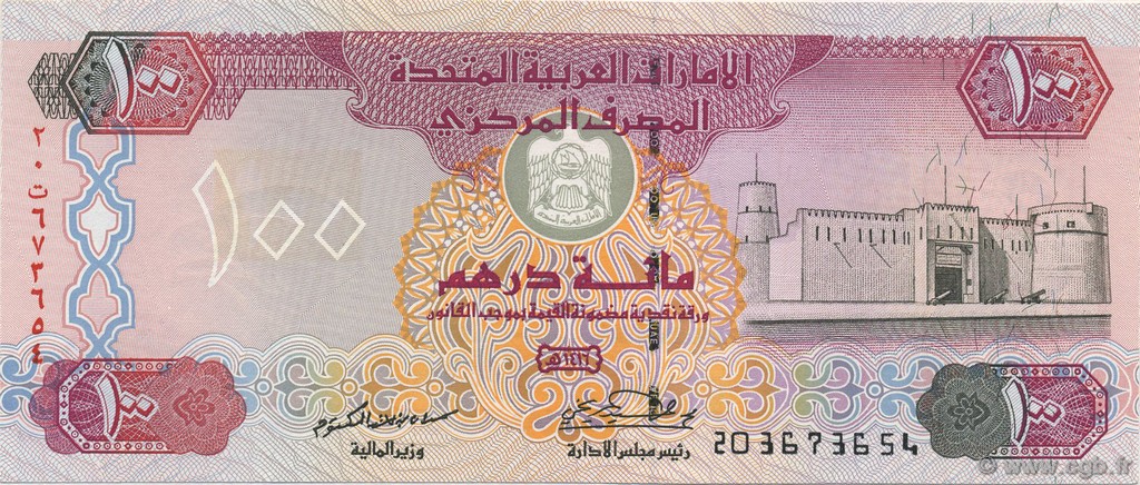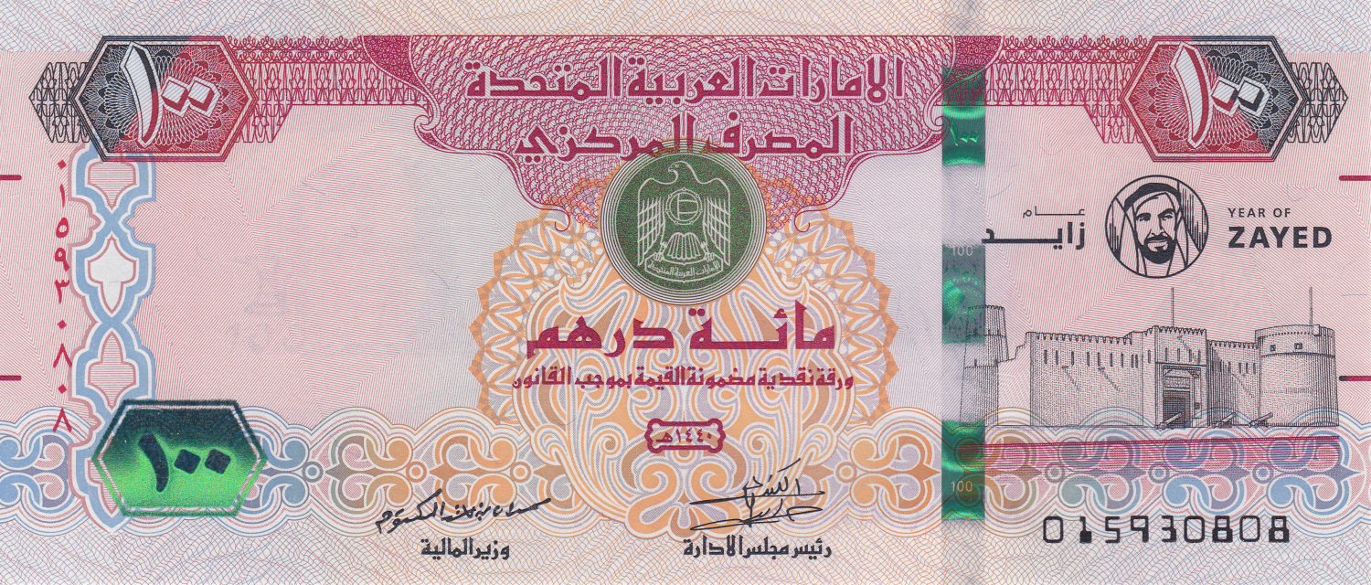 100디르함 지폐는 알파히디 요새와 두바이 월드 트레이드 센터를 그대로 유지한 채 수차례의 마이너 업그레이드를 통해 유통되고 있습니다.