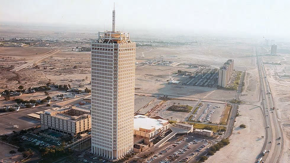 뒷면에는 두바이의 현재로 1979년 개장한 셰이크 자이드 로드 최초의 초고층 건물이자 랜드마크인 두바이 월드 트레이드 센터 빌딩이 담겨있었습니다. 두바이 월드 트레이드 센터 빌딩 개장식에는 영국 엘리자베스 2세 여왕이 귀빈으로 참석했었다는군요.