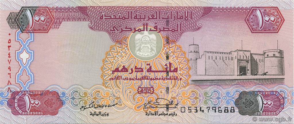 100디르함 지폐는 알파히디 요새와 두바이 월드 트레이드 센터를 그대로 유지한 채 수차례의 마이너 업그레이드를 통해 유통되고 있습니다.