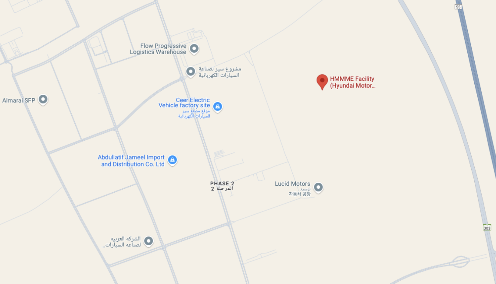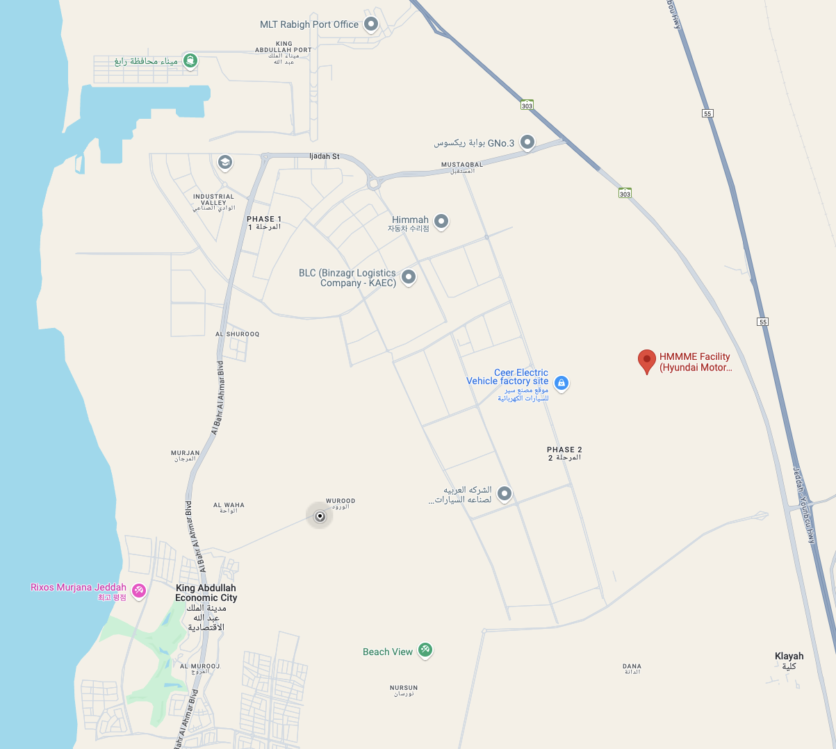 인더스트리얼 밸리 남쪽 Phase 2에 현대차 조립공장이 들어서게 될 킹 살만 자동차 산업단지 (King Salman Automotive Cluster)가 자리잡고 있습니다. 현재 이곳에는 3개의 자동차 회사가 입주해 생산을 시작했거나 준비 중에 있습니다. 네... 위에서 설명했듯 현대차가 이곳에 입주한 첫 회사는 아니에요. 물론, 그 셋 중에는 가장 유명한 회사긴 하지만요.