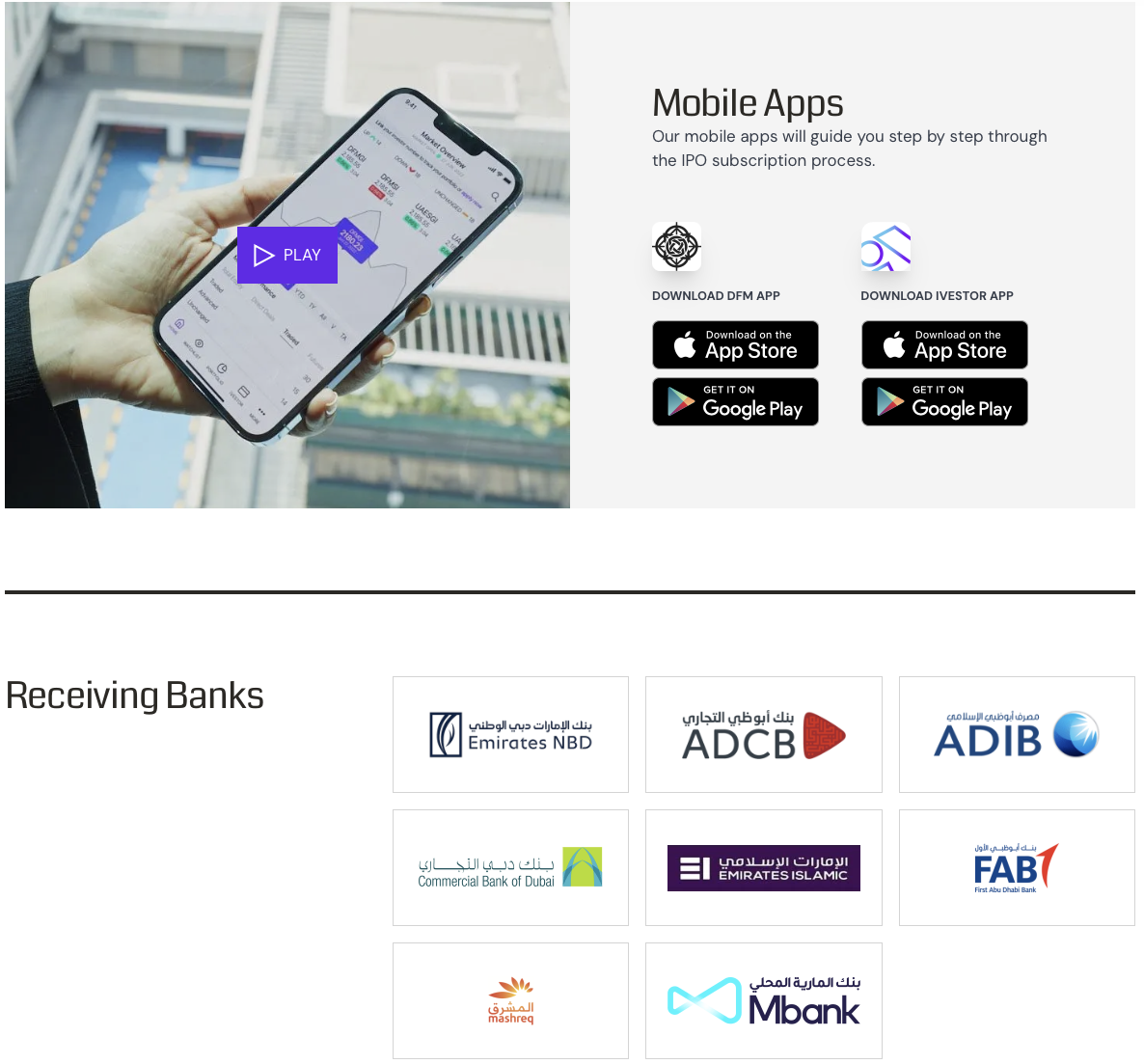 공모주 청약 채널은 두 가지 방법 중 하나를 택할 수 있습니다. 두바이 증권 거래소나 자회사 iVestor를 통해 직접 신청하거나, 증권사가 아닌 중개 은행을 통해 신청하면 됩니다. 은행의 경우 계좌 서비스 중 IPO라는 서비스 메뉴가 따로 있으니 어렵지는 않습니다. 거기서 요구하는 정보를 입력하고 (이게 좀 귀찮....) 진행하면 됩니다.