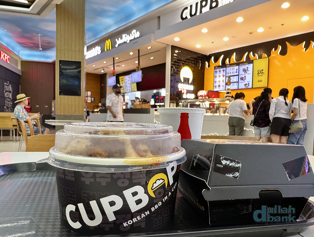 컵밥 두바이는 이집트 코트와 튀니지 코트 경계에 자리잡은 푸드코트에 입점해 있습니다.