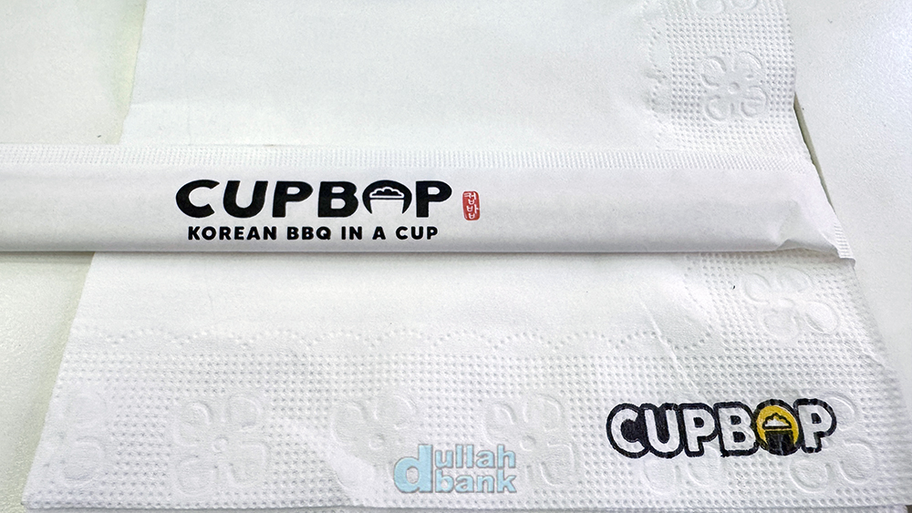 냅킨과 나무 젓가락 포장지에도 컵밥 로고가 새겨져 있습니다.