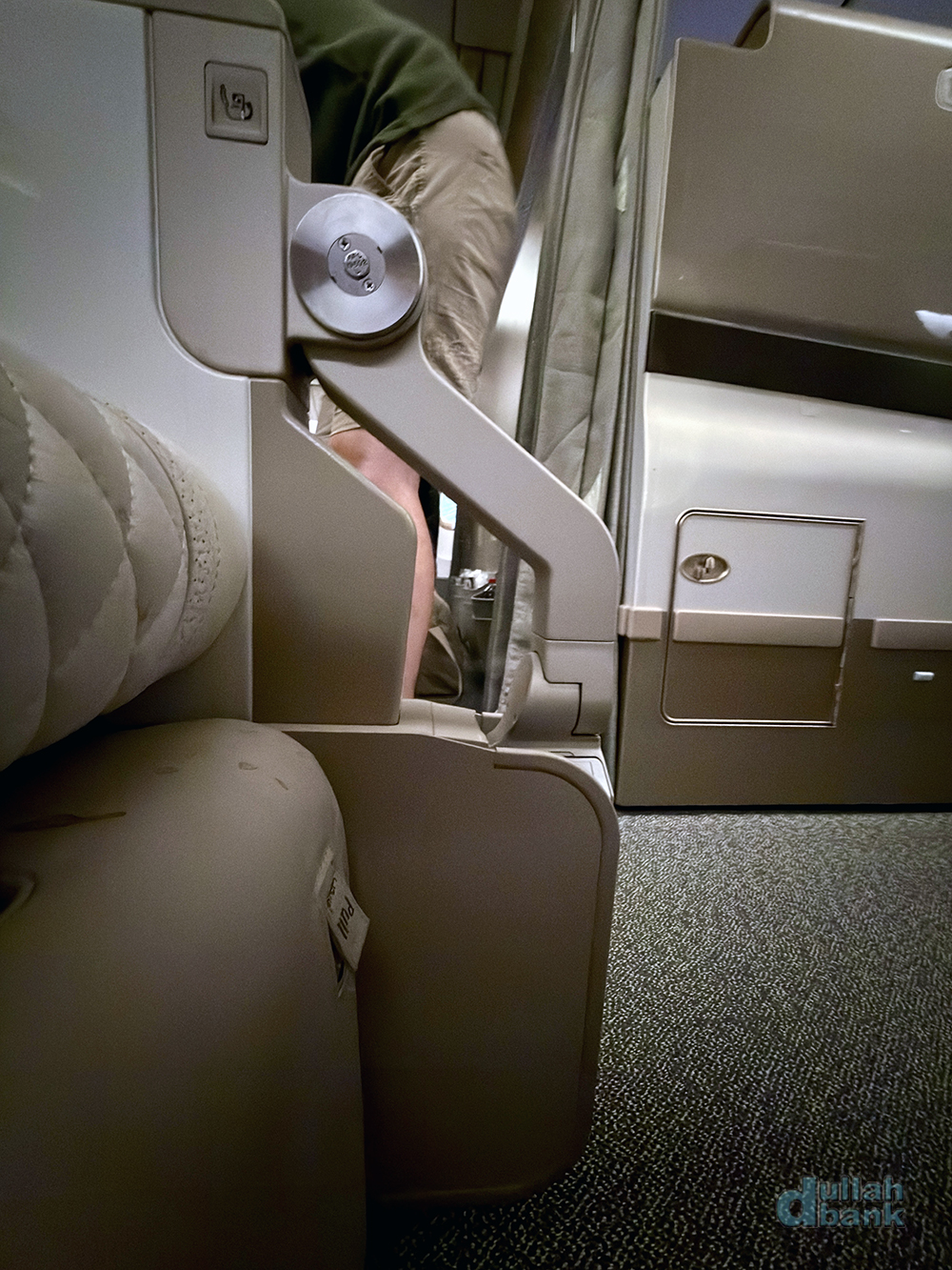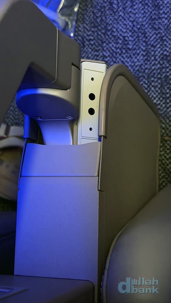 좌석 옆에는 헤드폰이 들어있는 수납공간이 있고, 기본적인 컨트롤 패널 외에 좌석을 젖히거나 리클라이너를 컨트롤 할 수 있는 버튼이 있습니다. 움직이기에 조금 뻑뻑한 느낌이긴 했습니다만...