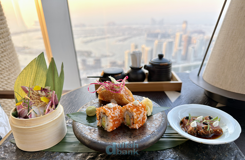 그리고 셰프 셀렉션이라 칭한 4가지 핑거푸드 메뉴가 함께 나옵니다. 참고로 12~4시에는 애프터눈 티 세트 (175디르함)를 주문할 수 있고, 95디르함을 추가하면 낮술로 모엣 샹동 임페리얼 브뤼 한 잔을 추가할 수 있습니다.