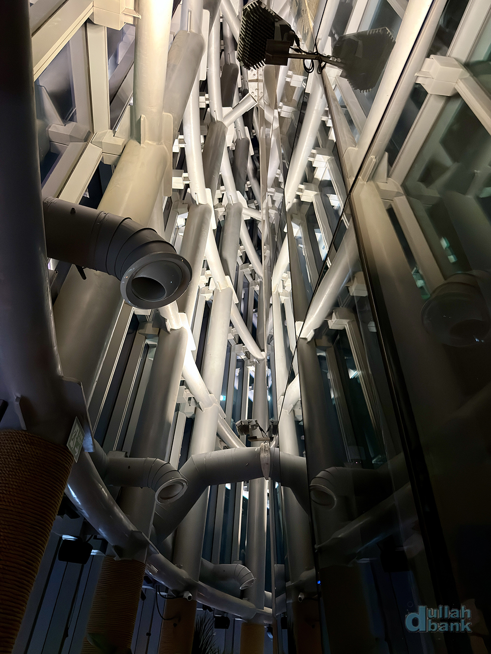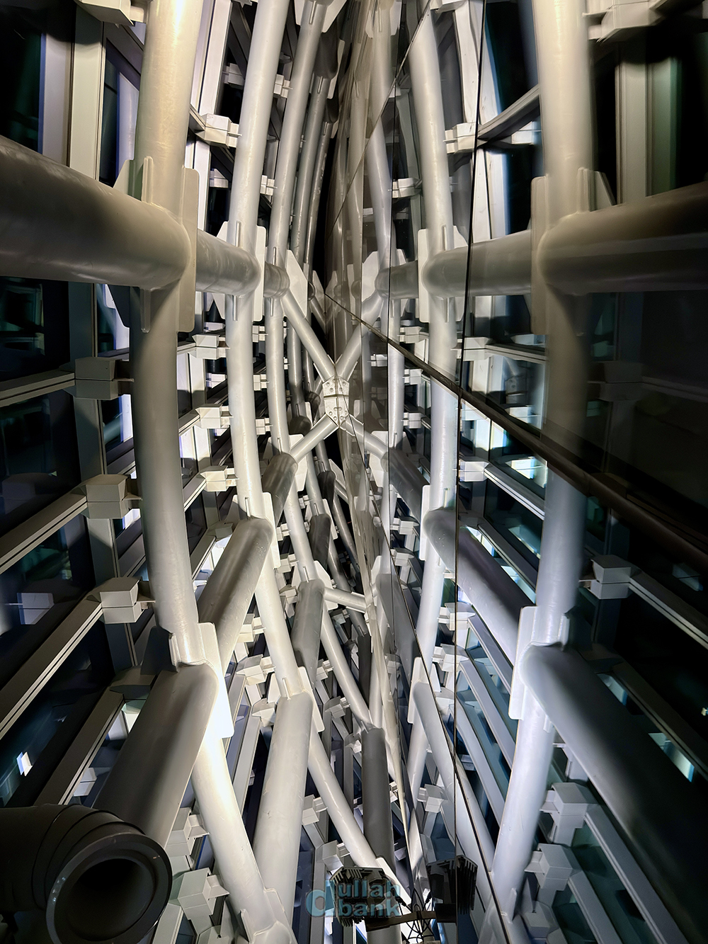 밤이 되어 조명이 켜졌을 때 위를 올려다보면 공기 흐름 제어 및 바람 저항 최소화를 고려한 비대칭적 설계를 극적으로 볼 수 있는 곳이기도 합니다.