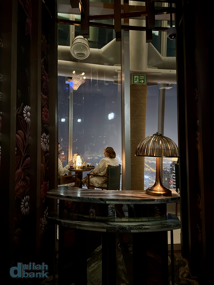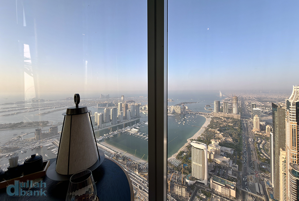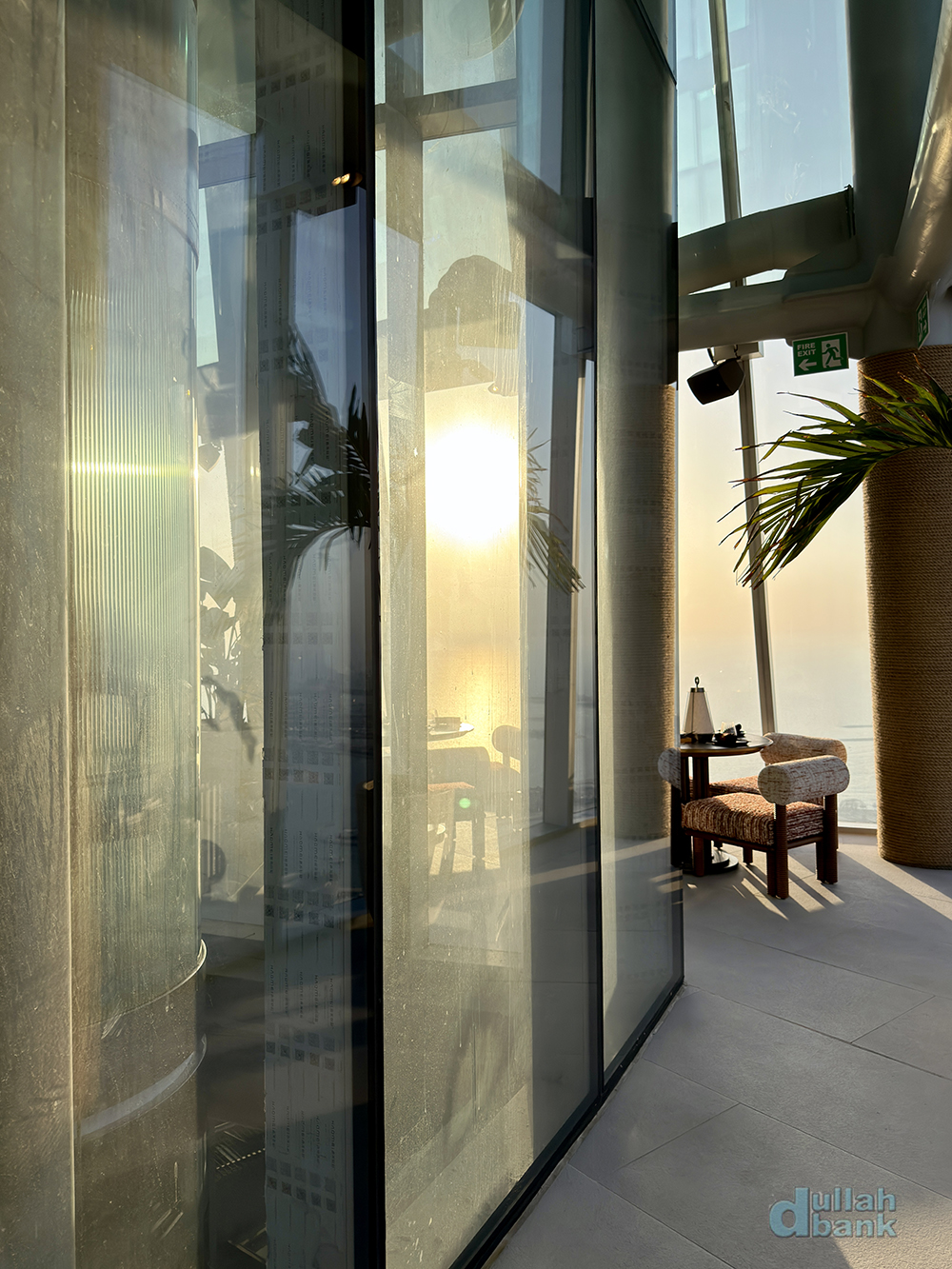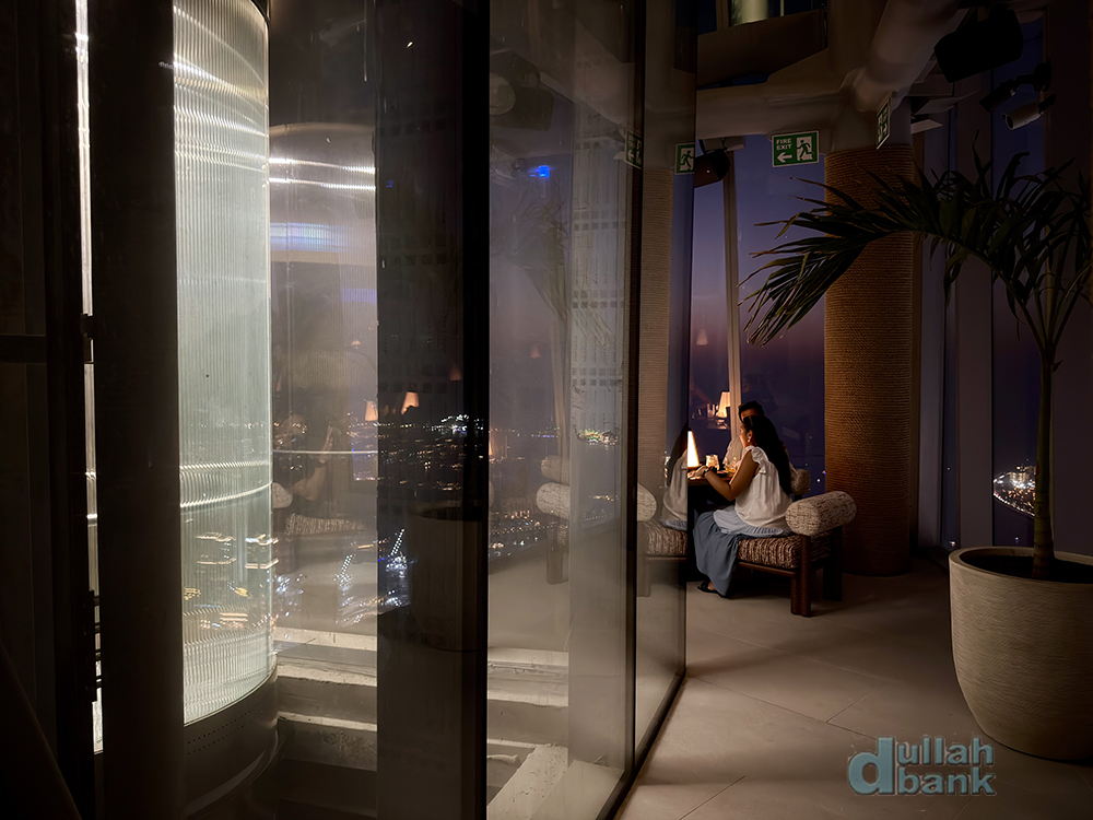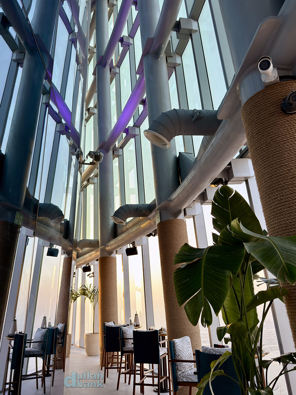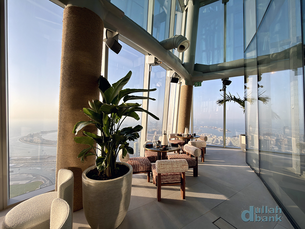직원의 안내를 받아 미나 세야히, 두바이 하버, 팜 주메이라의 뷰를 즐길 수 있는 자리를 배정받았습니다.