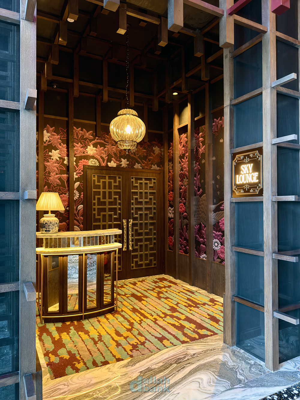 파노라믹 뷰를 즐길 수 있는 스카이 라운지는 라운지 중간에 뚫어놓은 공간을 활용해 엘리베이터를 설치한 것이 인상적이었습니다. 라운지 내부에서 엘리베이터를 볼 수도 있는 것처럼, 엘리베이터에서 내리면 맛보기라도 하듯 입구 반대편에 라운지 내부를 볼 수 있는 독특한 디자인의 공간이니 말이죠.