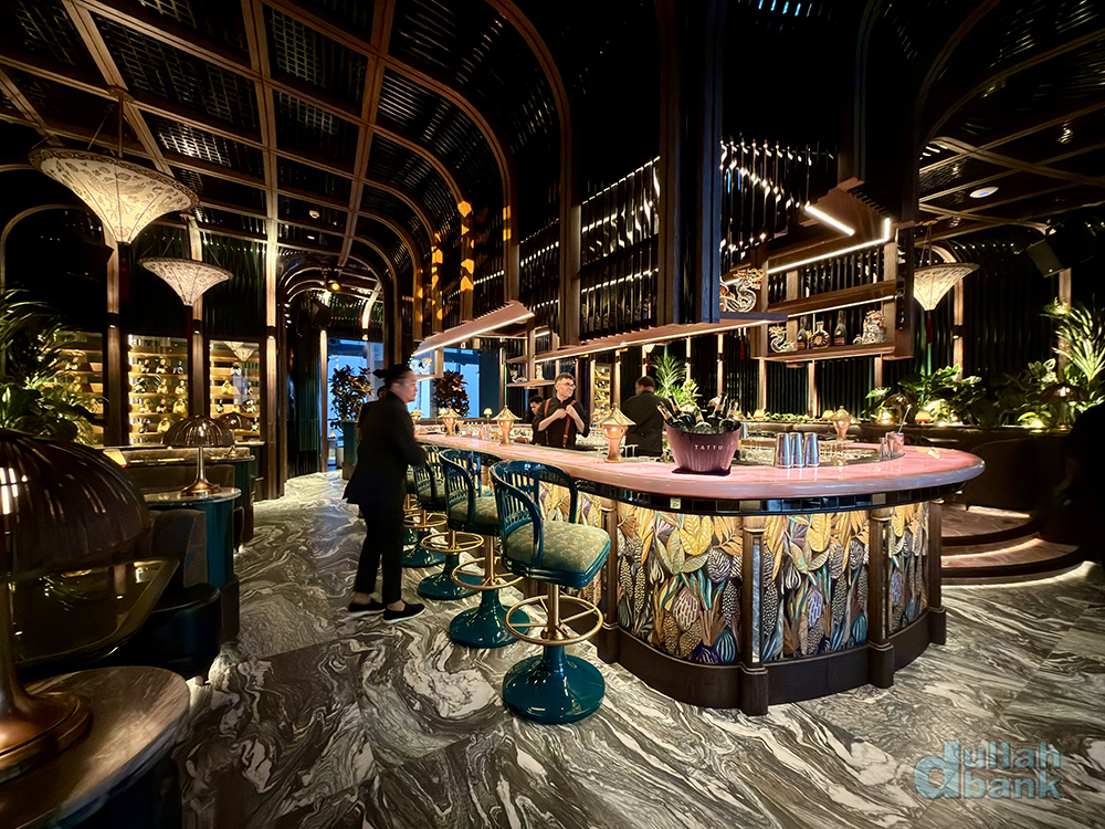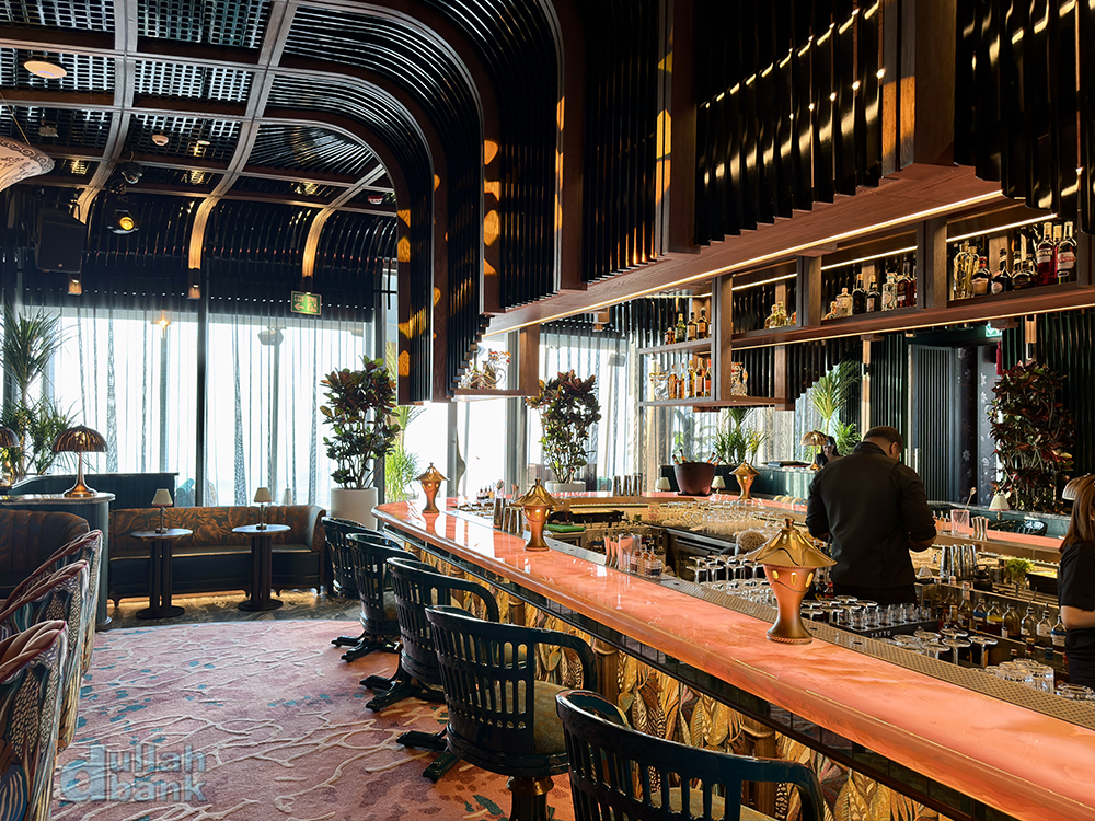 라운지의 전면뷰인 아라비안 걸프와 후면뷰인 에미레이트 힐스, JLT는 좀더 공간에 여유가 있어 다인석 소파를 포함해 높이가 낮은 테이블과 의자가 세팅되어 3명 이상의 손님이 이용할 수 있고,