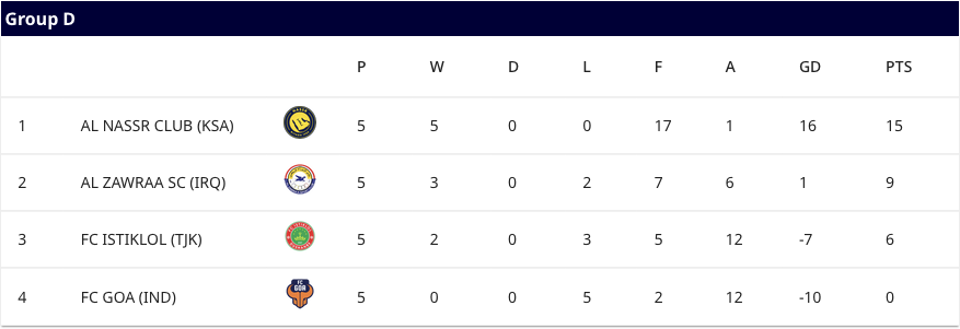 D2) 알자우라아는 4연패로 탈락이 일찌감치 확정된 고아와의 경기에서 하산 압둘카림의 결승골로 2대1 승리를 거두고 다음 라운드에서 알나스르에게 참패를 당하지 않는 한 조2위로 16강 진출에 한발 더 다가섰습니다.