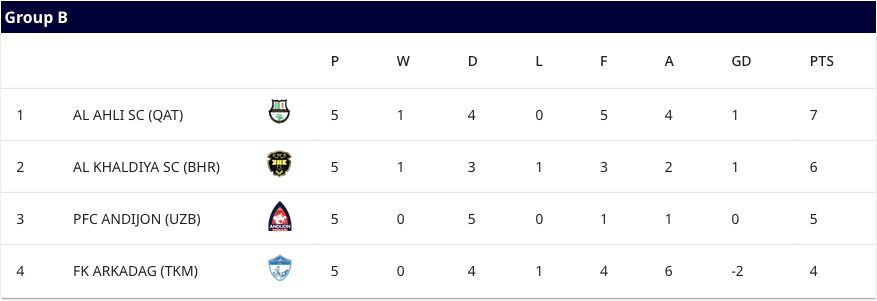 B-2) 네 경기 연속 무승부를 기록중인 안디존과 두 경기 연속 무승부를 기록 중인 아르카닥의 경기는 디다르 두르디프의 동점골로 1대1 무승부를 거두면서 두 팀은 각각 다섯 경기, 세 경기 연속 무승부 기록을 이어갔습니다. 5라운드까지 10경기 중 단 두 경기에서만 승리가 결정되었을 정도로 무승부가 대폭발한 B조는 마지막 라운드 결과에 따라 모든 팀들이 16강 진출을 노려볼 수 있는 대혼전이 계속되고 있습니다.