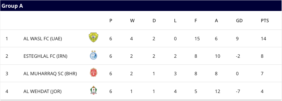 알와슬 (A조 1위), 에스테그랄 (A조 2위)