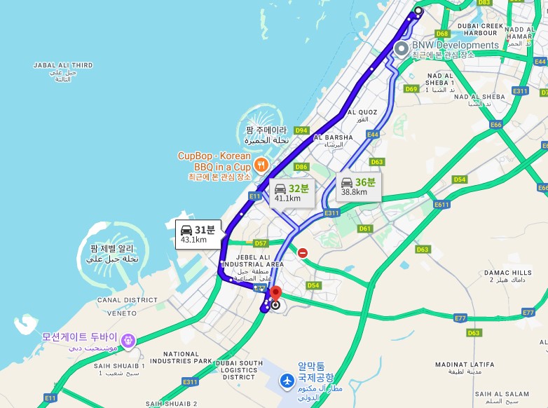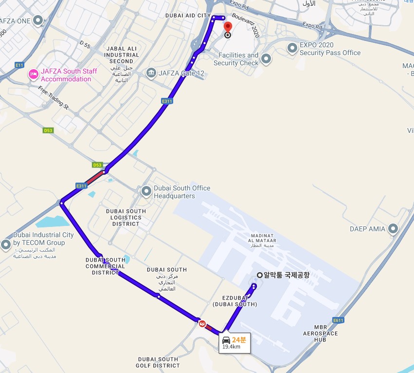 2) 알막툼 국제공항 (DWC)에서 전시장까지