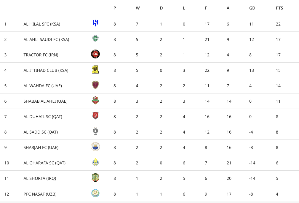 1) 16강 진출을 확정지은 알아흘리와 샤밥 알아흘리의 경기에서는 일곱골을 주고받은 난타전 끝에 살레 아부 알사마트의 결승골을 앞세운 알아흘리가 4대3으로 승리하며 리그 스테이지 2위를 확정지었고, 경기에서 패한 샤밥 알아흘리도 같은 시간에 경기를 펼친 샤르자가 패하면서 16강행을 확정지었습니다.