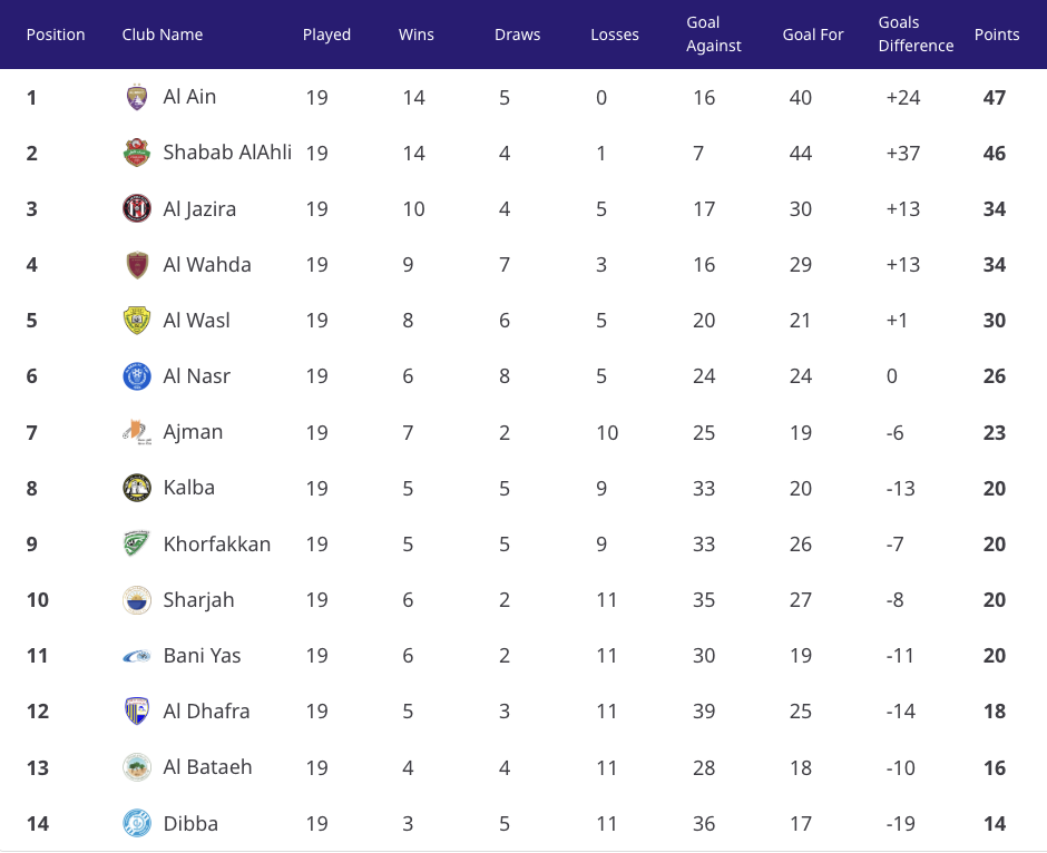 3) 10연승 후 두 경기 연속 무승부에 그치며 선두를 내준 샤밥 알아흘리와 칼바의 경기에서는 쿠안 실바의 결승골을 앞세운 샤밥 알아흘리가 한 골을 만회하는데 그친 칼바를 5대1로 대파하고 세 경기 만에 승리를 거뒀습니다.