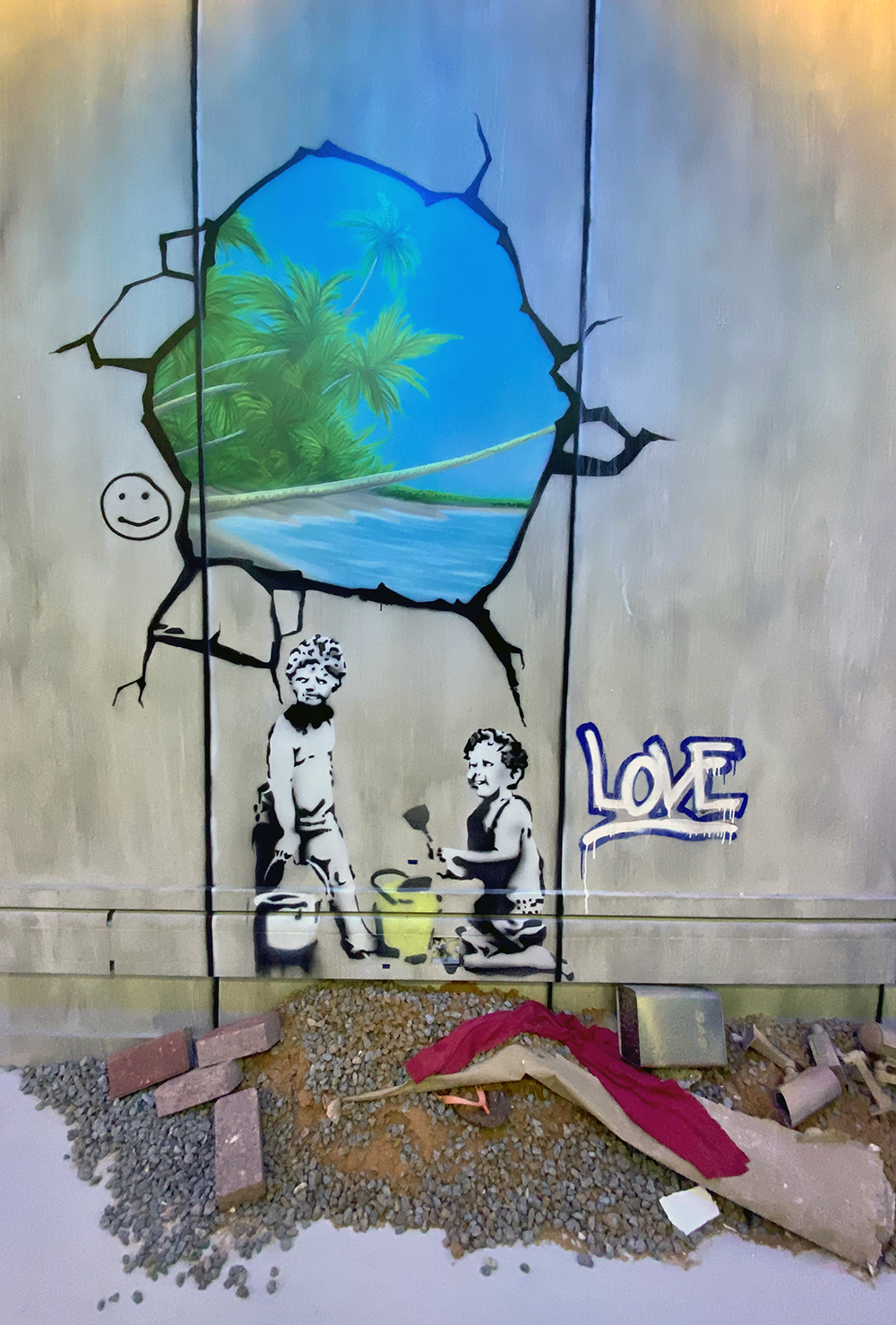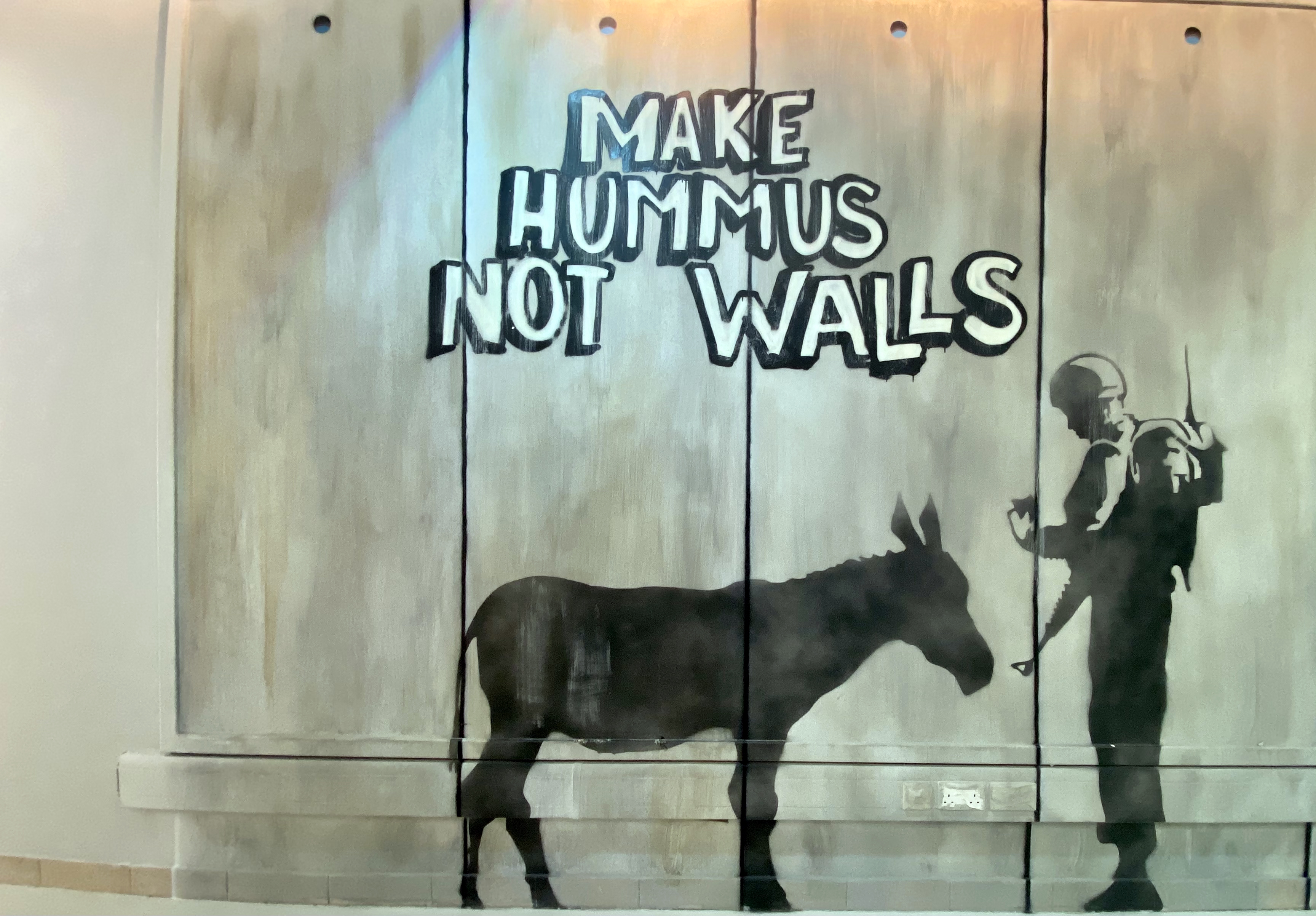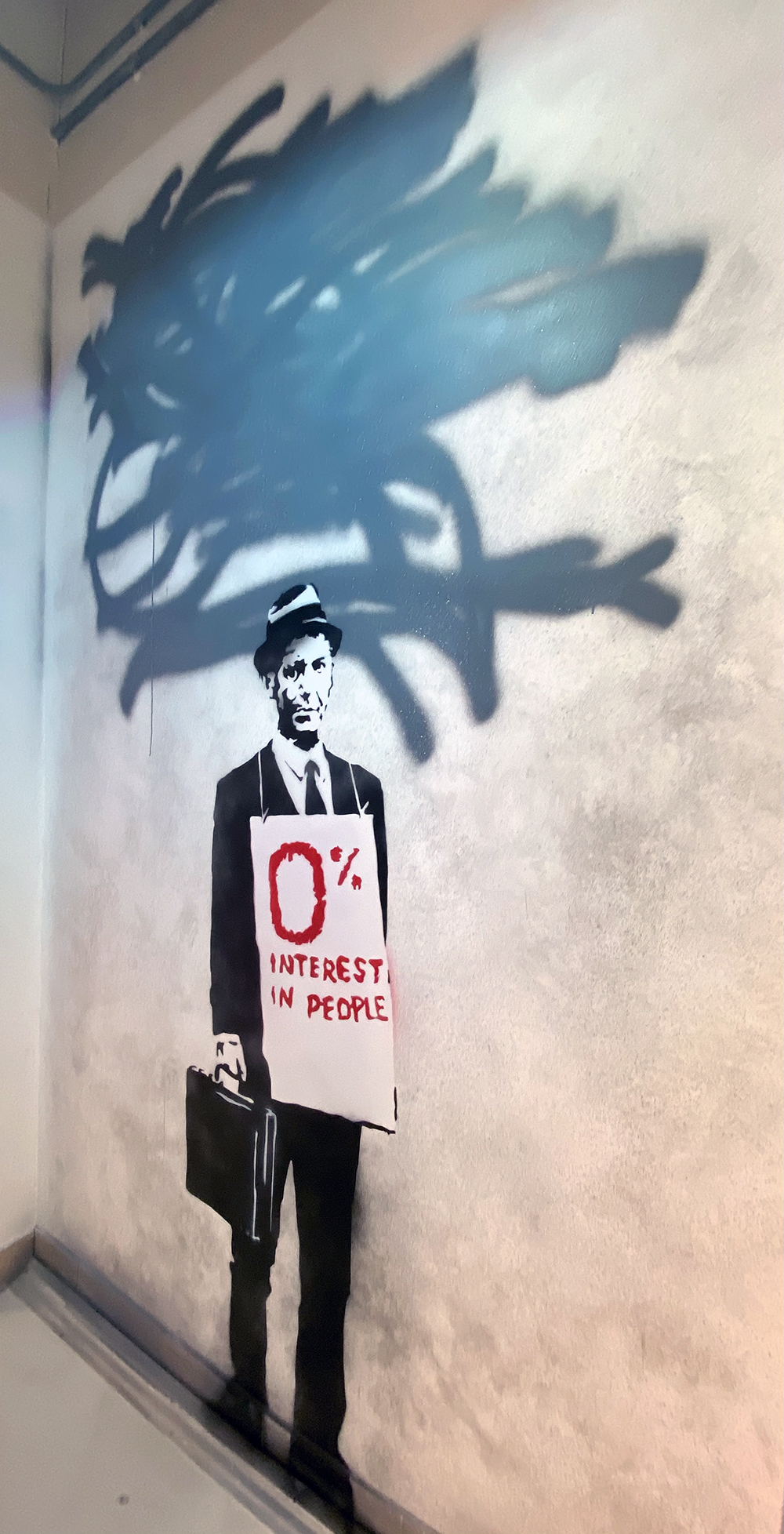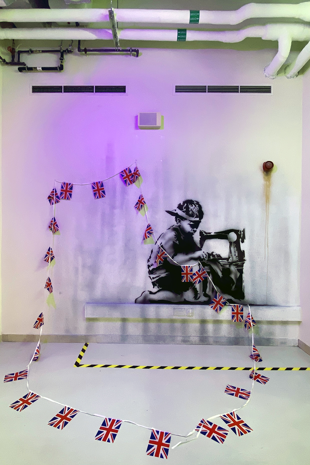 전시회는 뱅크시의 눈으로 본 세상을 그린 120개가 넘는 작품들이 전시실 환경에 맞게 만든 벽화, 혹은 액자에 걸린 형태로 전시되어 있으며, 두 개층으로 이뤄진 전시회장을 오가며 둘러볼 수 있습니다.