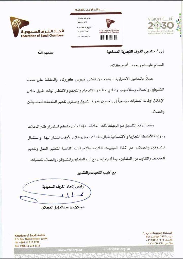 사우디 일간지 오카즈와 사우디 가젯트 등은 15일 사우디 상공회의소연합이 발행한 회람을 통해 사우디 내 매장과 영업시설들이 예배시간에도 영업 및 경제 활동을 계속할 수 있다는 지침을 내렸다고 보도했습니다. (링크)