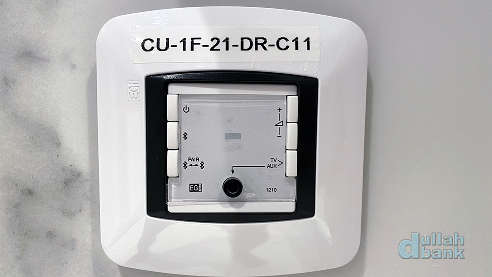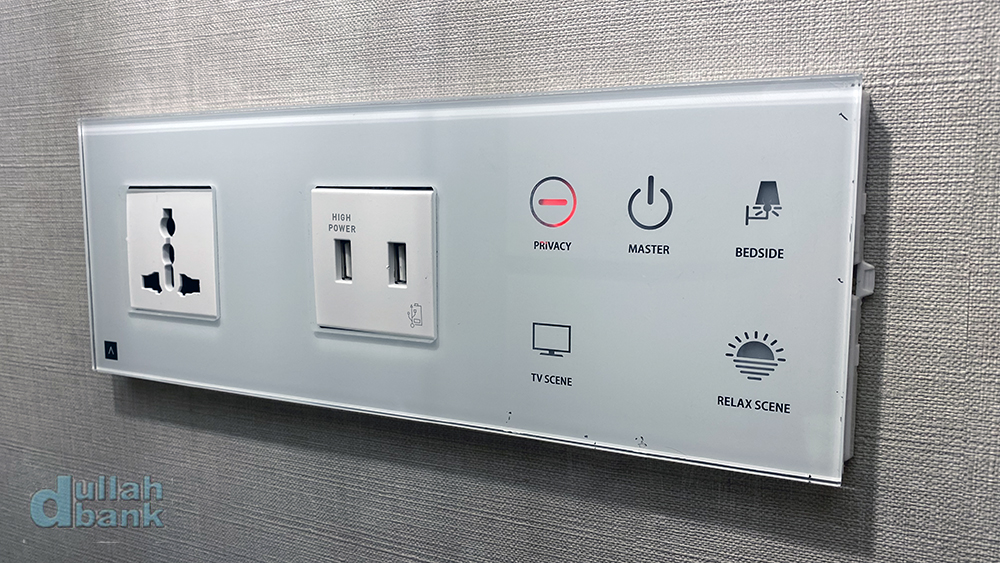 지금까지 묵었던 호텔에서는 처음보는 특이한 컨트롤 패널을 통해 화장실 천장에 달린 스피커를 블루투스 스피커로 사용하던가, 객실 TV용 스피커로 연결해서 사용할 수 있습니다.
