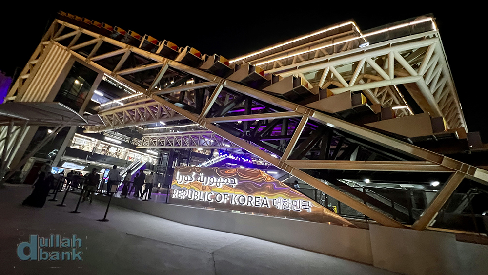 UAE 내에선 샤르자를 제외하고는 비무슬림 외국인들을 고려하여 정해진 공간 내에서의 음주는 허용하지만, 공공장소에서 병나발 드링킹을 한다던가 티내는 건 불법 (그래서 속이 안 비치는 비닐봉지에 담습니다.)이고, 술과 관련해 걸리면 처벌은 쎕니다. 그런 탓에 한국관 내에서 식당이 있는 2층이 가장 시원합니다. 전시관 입구보다 되려 가장 잘 보이게 카페가 들어서 있던 프랑스관, 폴란드관, 벨기에관과 달리 한국 식당이 건물 안쪽에 짱박혀 있는 이유이기도 합니다.