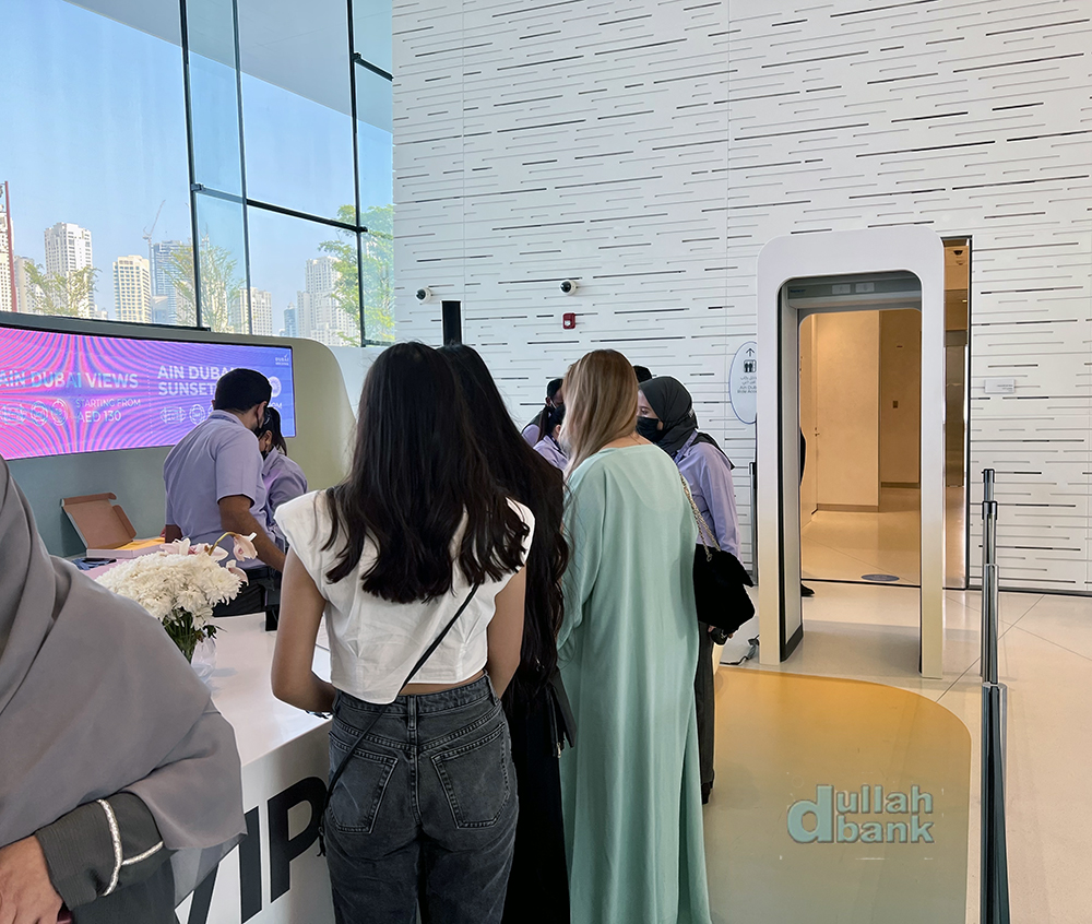 이제 입구로 들어가봅니다. 아인 두바이가 한바퀴 도는데 걸리는 시간은 38분 정도이며, 캐빈 안에는 화장실이 없기 때문에 대기 및 용변을 볼 시간을 감안하여 60분 전에는 도착할 것을 권고하고 있습니다.