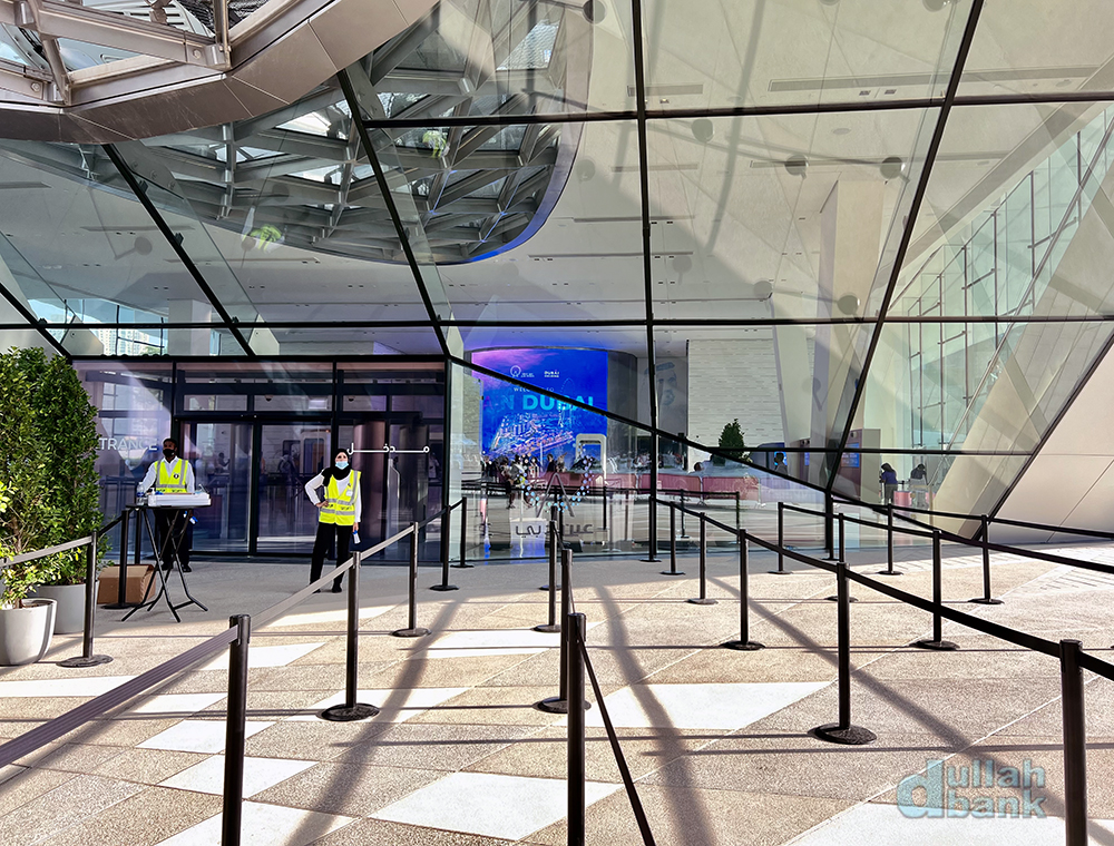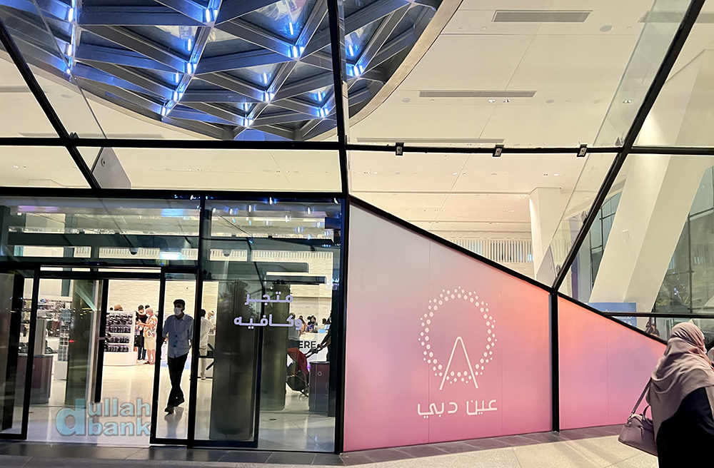 입구가 나타납니다. 대기열을 세울 수 있는 오른쪽이 아인 두바이의 입구, 왼쪽이 기념품점 입구이자 아인 두바이의 출구.