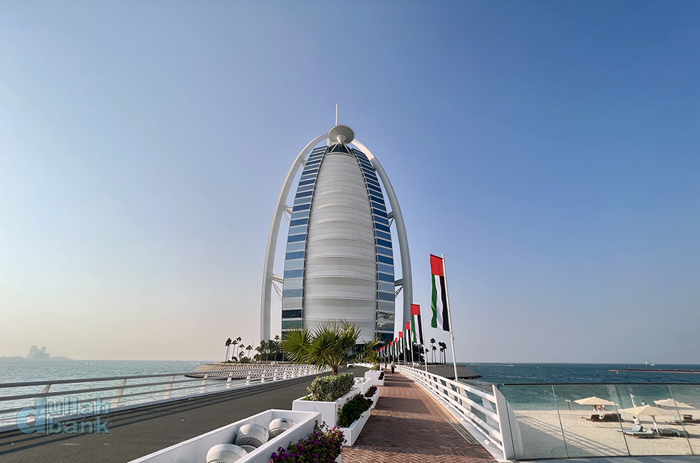 지난 세기까지 전세계에 그야말로 듣보잡이었던 두바이라는 도시의 이름을 알린 대표적인 랜드마크는 세계 최초 7성급 호텔임을 내세우며 1999년 12월 1일에 개장한 부르즈 알아랍입니다. 과거 외국인 거주지이자 휴양지였던 시카고 비치 호텔이 있던 일대를 재개발하면서 주메이라 비치 호텔과 함께 해안에서 280미터 떨어진 곳에 호텔만을 위한 인공섬을 조성하고 그 위에 세워진 높이 321미터의 모든 객실이 복층 스위트룸으로 꾸며진 럭셔리 끝판왕 호텔.