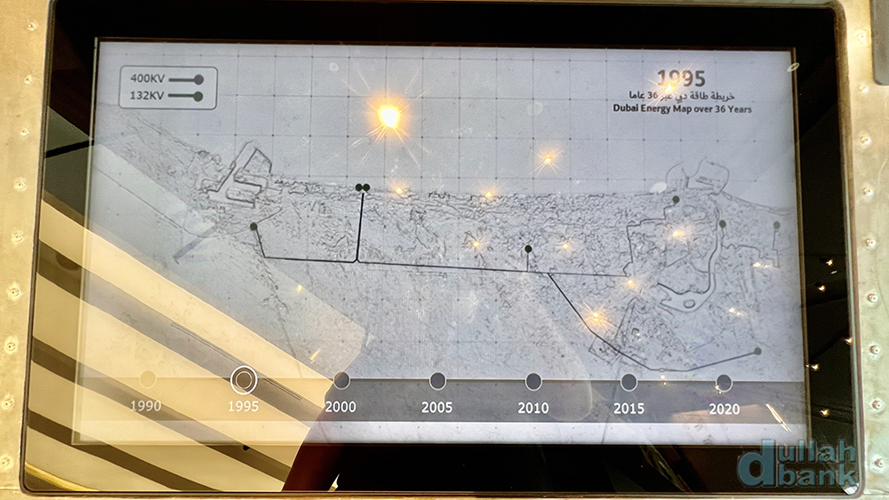 전기 개발의 역사와 두바이의 역사를 함께 보여주는 전시물이 자리 잡고 있습니다.