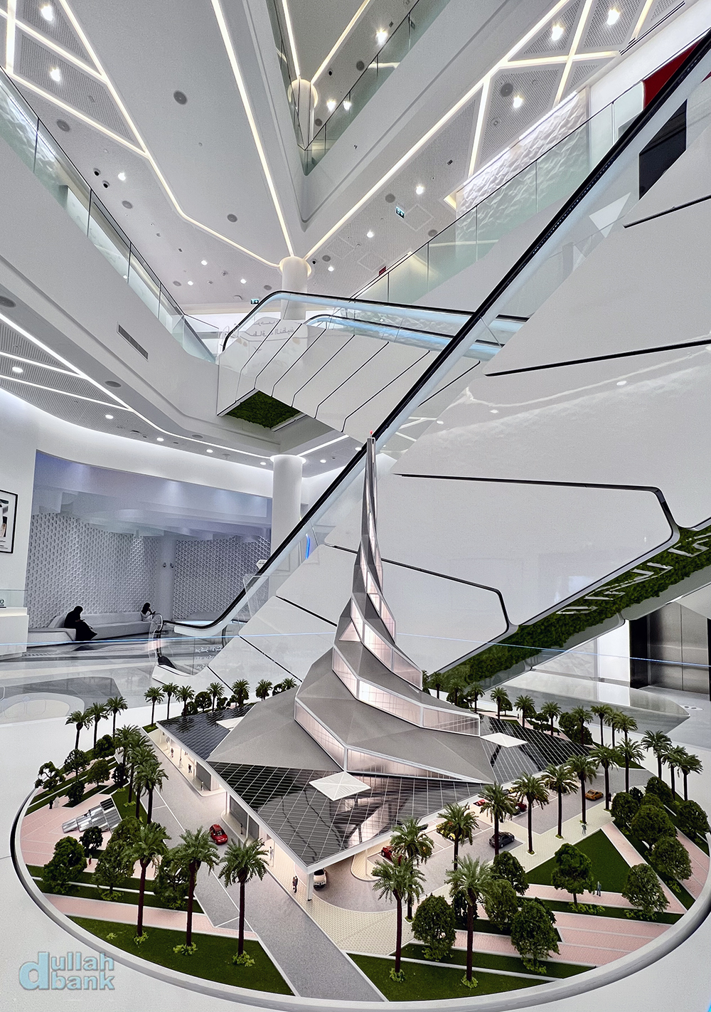 왼편에는 셰이크 칼리파, 셰이크 무함마드, 셰이크 함단의 초상화와 함께 이 센터의 수상 내역을 전시하고 있습니다. 센터 건물은 LEED (친환경 빌딩 인증제도) 플래티넘 등급 (110점 만점에 101점)을 획득하는 등 다양한 수상 기록을 가지고 있습니다.