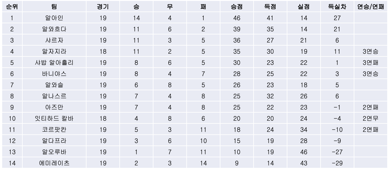 2) 현실적으로 리그 3위를 노리는 디펜딩 챔피언 알자지라는 원정 경기에서 밀로스 코사노비치의 결승골로 알오루바를 0대1로 꺾고 3연승을 달렸습니다.