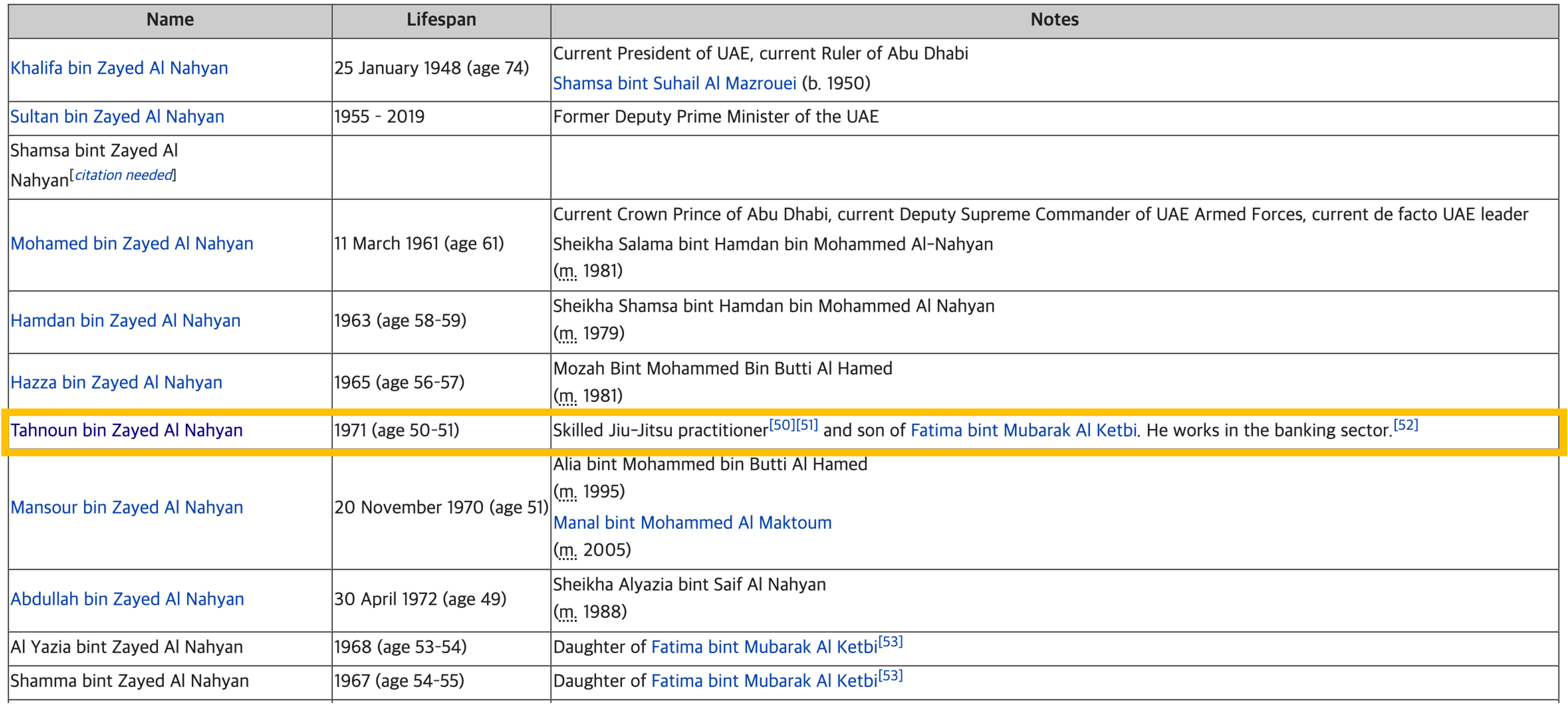 몇 년이 지나도록 잊혀지지 않는 이 이야기에서 괜스레 궁금했던 점은... 과연 셰이크 자이드의 유산을 포함한 알나흐얀 씨족의 자산을 관리한 아들은 누구였을까? 였습니다. 워낙 이 동네 지도층 내부의 깊숙한 사정은 잘 드러나지 않음에도 불구하고, 코로나 사태 이후 그간 이름이 잘 알려지지 않았던 알나흐얀 씨족 내 한 셰이크가 급부상하게 됩니다. 그가 누군지 알아보기 위해 우선 UAE의 국부 셰이크 자이드의 자녀를 살펴봅니다.