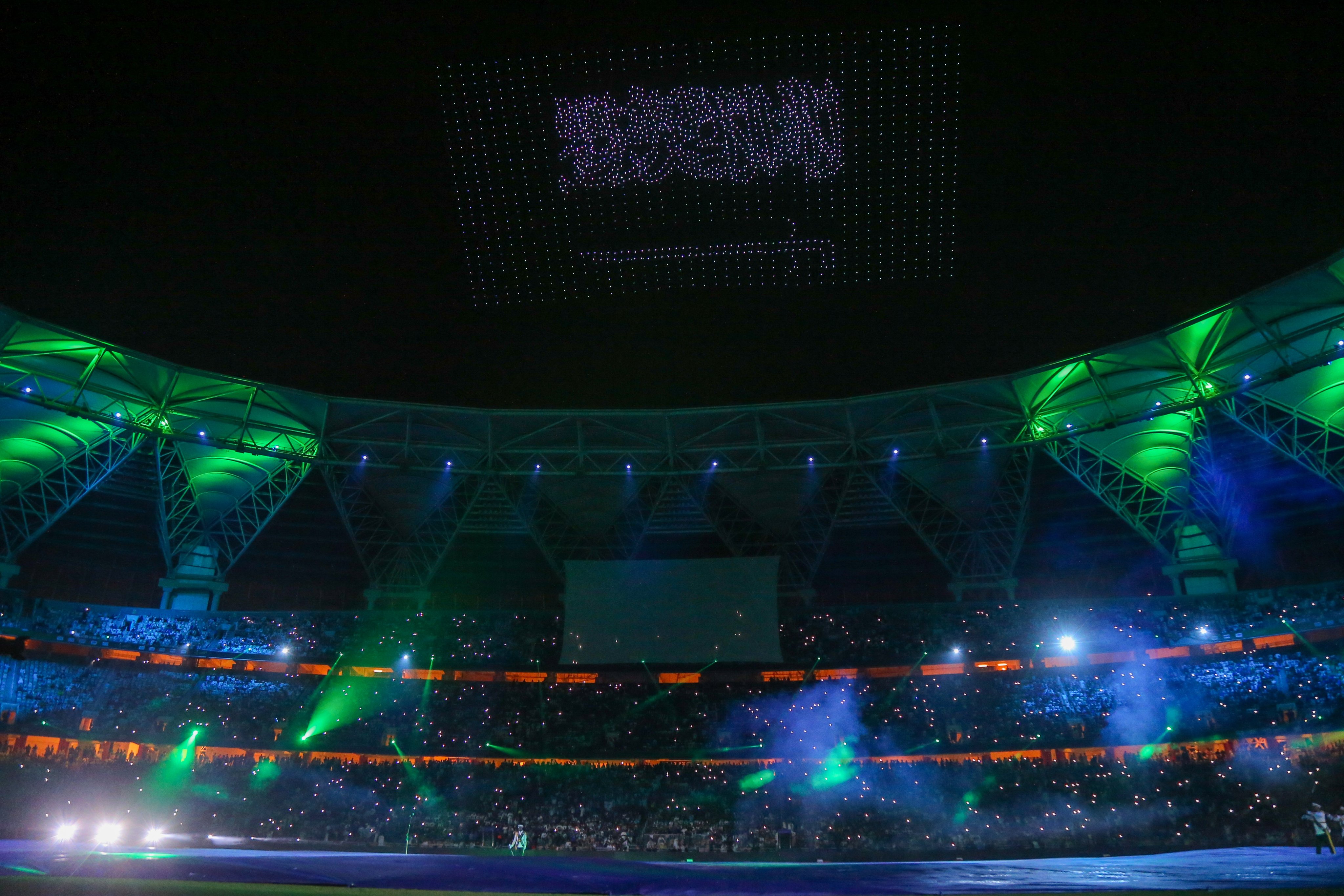 전통에 따라 하프타임에 경기장을 찾은 무함마드 빈 살만 왕세자 환영 공연에서는 드론쇼까지 선보였습니다.