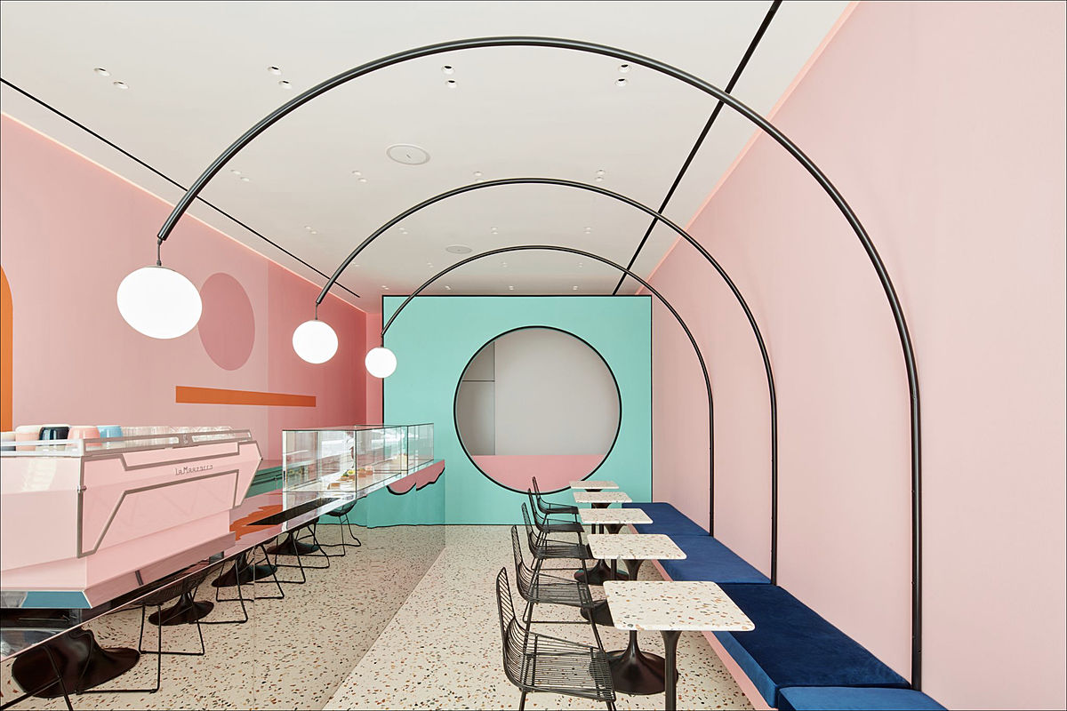 파스텔풍의 색채와 목욕탕 타일이 어우러진듯한 인테리어 속에서도 한국 케이크 전문점임을 알려주는 디테일이 있습니다.