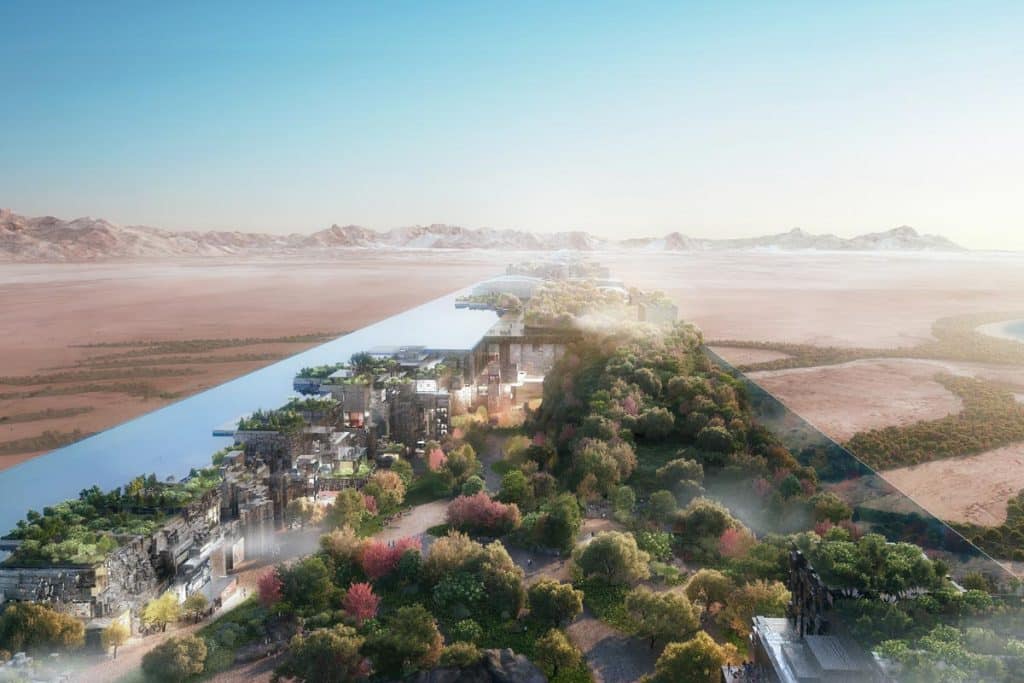 더 라인은 사우디 북서부, 네옴 북부 고산지대에 만들 GCC 최초의 산악 스키장이 있는 산악 리조트 트로제나,