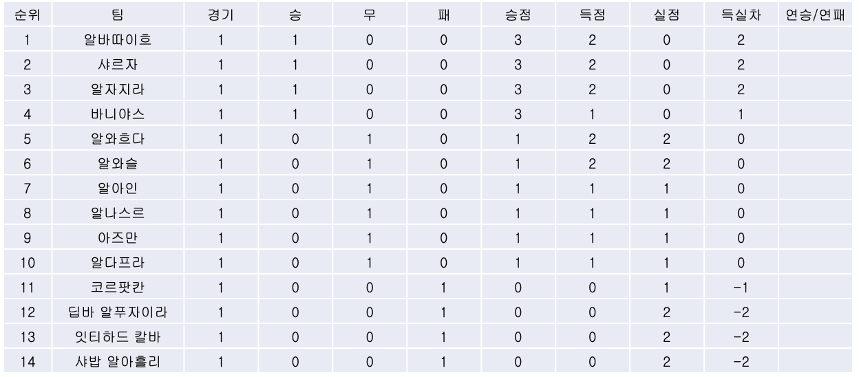 알와슬 2:2 알와흐다 (9월 2일 20:30/ 자빌 스타디움)