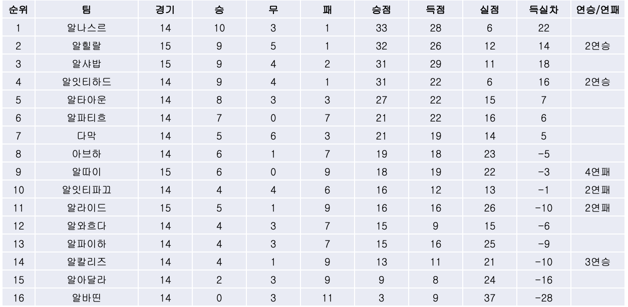 2. 리그 순위