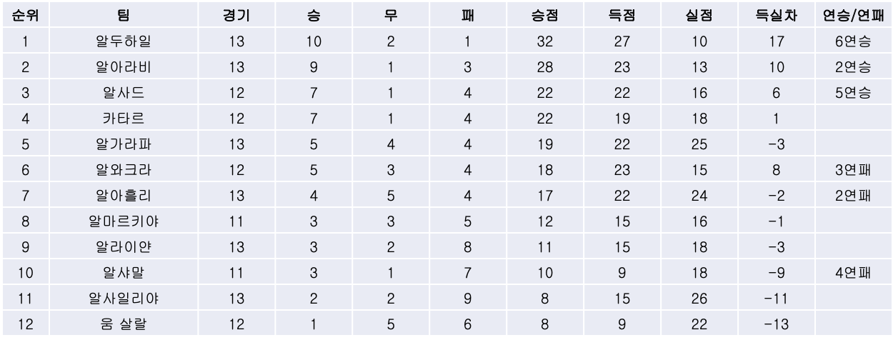 2. 리그 순위