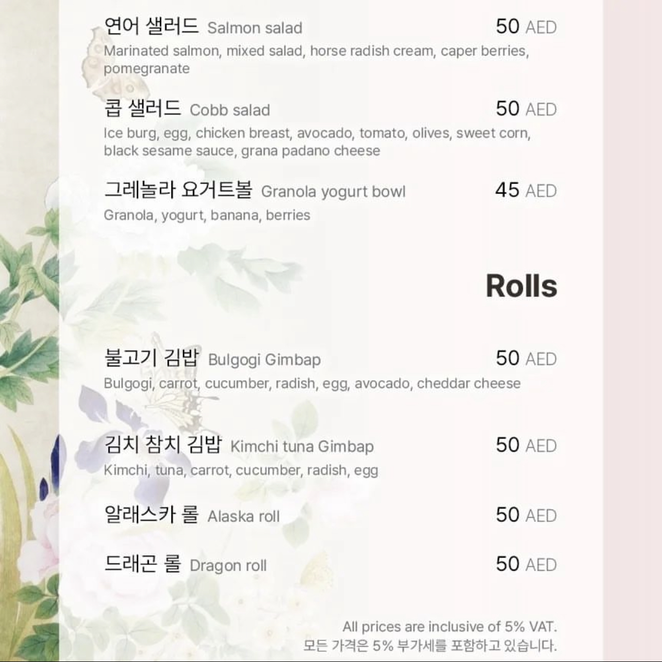수묵담채화스러운 표지가 느낌을 살려주는 메뉴판.