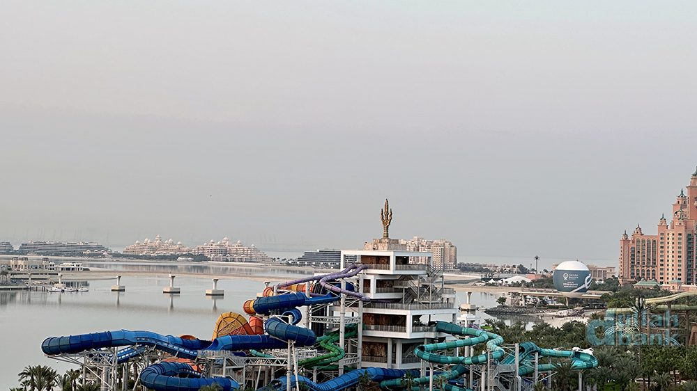 건물의 외관이 곡선이라 안 보일 수도 있는데, 이웃하고 있는 아쿠아벤처 워터파크와 아틀란티스 더 팜을 볼 수 있습니다.