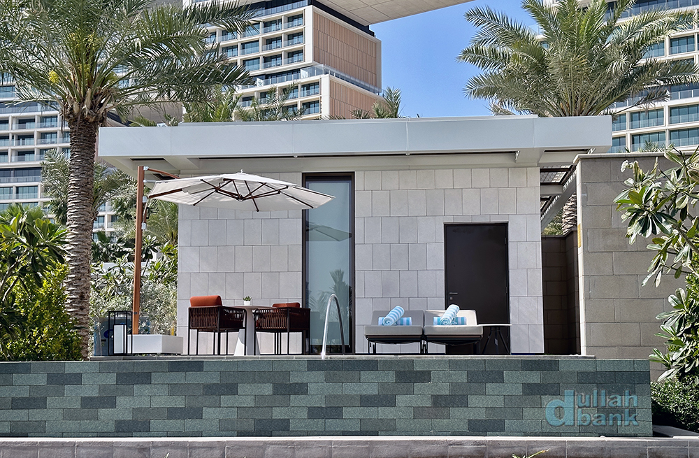 프라이빗 풀 카바나는 카바나 뒷편에 해변을 바라보며 즐길 수 있는 전용 인피니티 풀이 딸려 있으며, 1일 입장료는 10,000디르함 (약 357만원). 에어컨 없는 카바나와 마찬가지로 입장료에는 웰컴 플래터 하나와 750ml 샴페인 한 병이 포함됩니다.