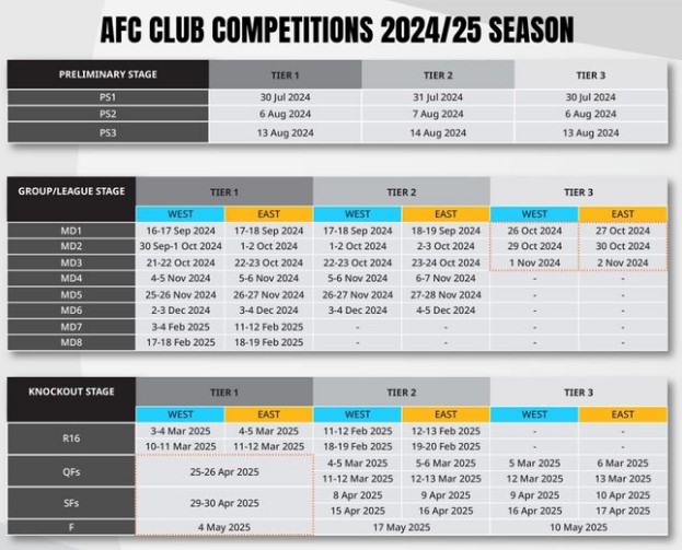 - 티어 1 (24개팀)- AFC 챔피언스 리그 엘리트 (ACLE)