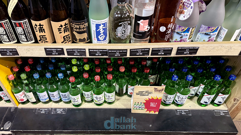 전 세계에서 오는 온갖 술을 구할 수 있는 UAE에서 그나마 유통이 되는 한국 술은 단연 소주입니다. 워낙 다양한 일식집이 존재해 사케와 위스키로 대변되는 일본 술과 칭따오 맥주를 비롯한 각종 중국 술에 비하면 단순하긴 하지만요.
