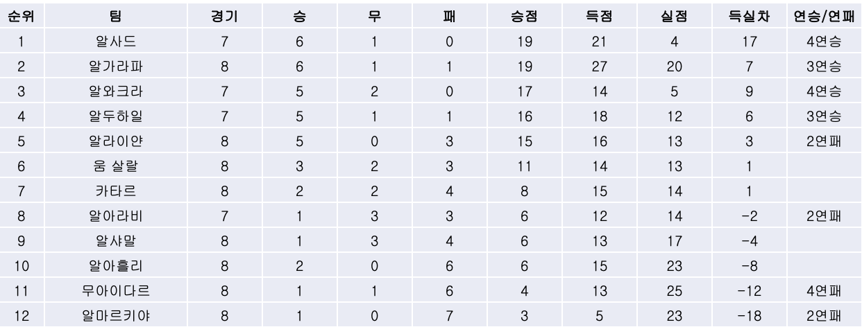 2. 리그 순위