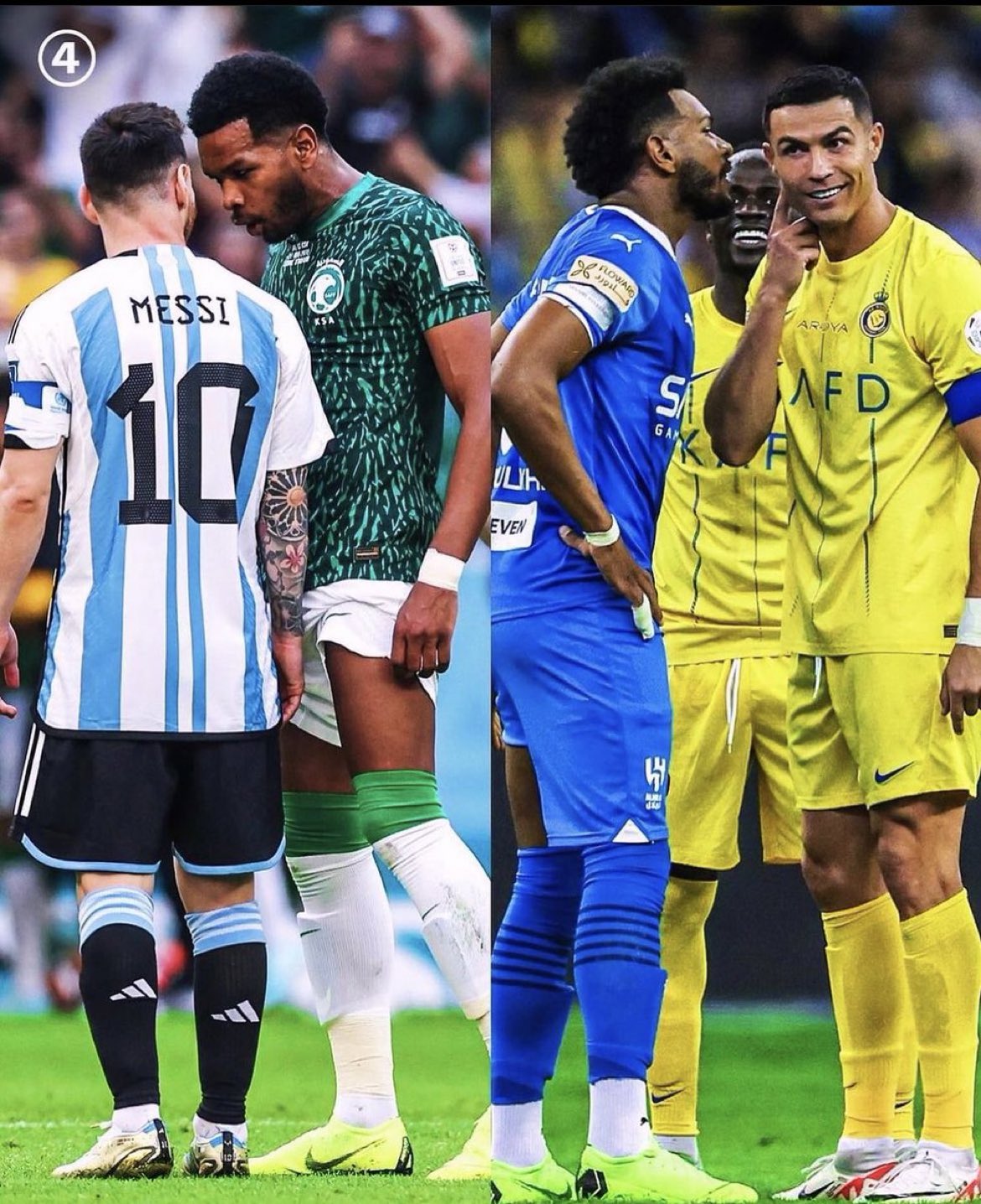월드컵에서 리오넬 메시를 도발했던 것처럼, 월드컵 후 사우디 리그, 특히 라이벌 팀인 알나스르로 이적한 크리스티아누 호날두 역시 그의 도발을 피할 수는 없었습니다. 게다가 연고 라이벌 알나스르 소속이니까요.