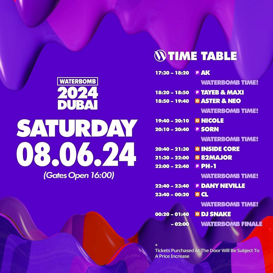 * 자세한 정보는 https://www.waterbombdubai.com/2024lineup