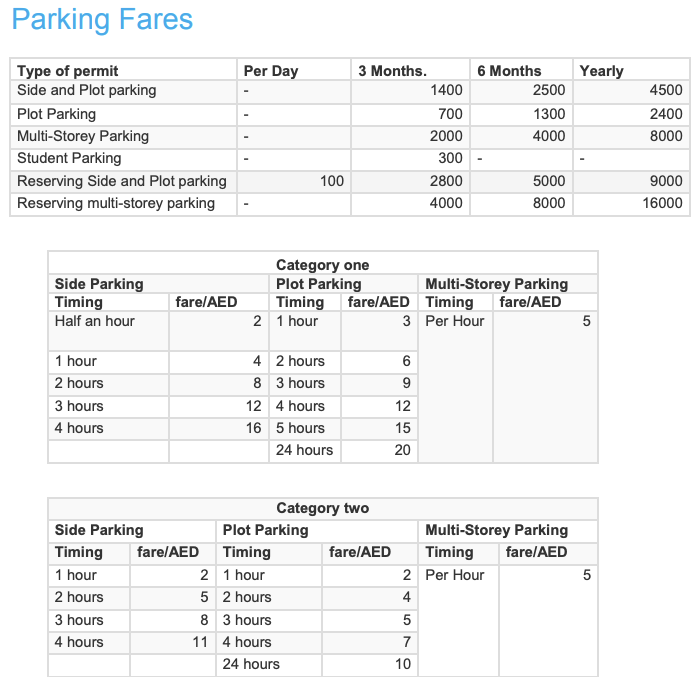 | 새벽 주차 (오전 4~6시) | 200디르함 | |