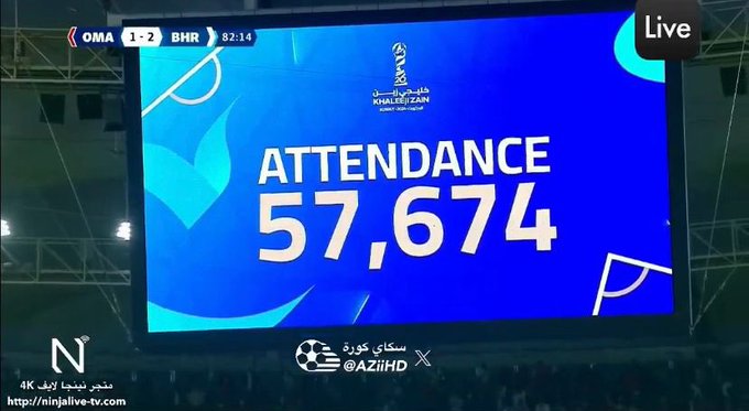 5) 오만과 바레인의 결승전은 개최국 쿠웨이트의 탈락에도 불구하고 57,674명의 관중이 입장한 가운데 경기를 지켜봤습니다.