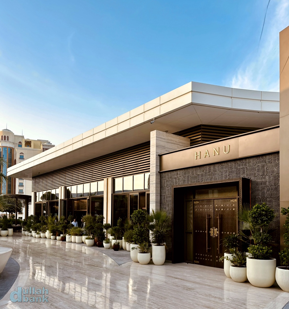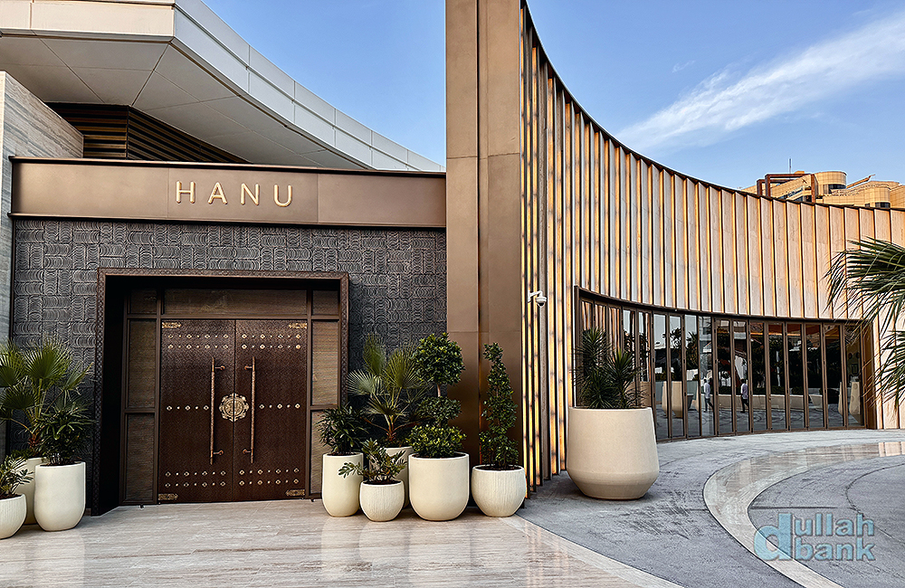 새로운 물결의 현대적인 한식 (a new wave of contemporary Korean cuisine)을 표방하며 한국의 한과 그리스어 NU를 조합한 하누는 팜 주메이라 중심에 자리 잡은 쇼핑몰인 나킬 몰 옥상에 자리 잡은 세인트 레지스 가든 (St. Regis Gardens)에 있습니다. 세계 최초로 두바이에 조성했다는 세인트 레지스 가든은 건물 구조상 여러 식당을 둘 수 없는 세인트 레지스 두바이 더 팜의 단점을 극복하기 위해 건물과 맞닿아 있는 쇼핑몰 옥상에 여러 파인 다이닝 레스토랑을 유치한 것입니다.