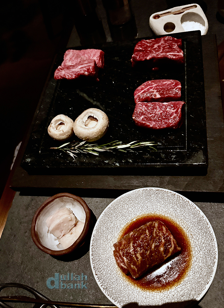 음식의 가격대는 옆동네의 스모키 모토나 아부다비의 누리와 비슷한 수준이라고 하네요. 음식만큼이나 조명 역시 계속 테스트 중이라고 하는데 전반적인 인테리어의 톤이 낮고 조명도 어두운 편이어서 럭셔리한 분위기를 이끌어 내지만, 아주 살짝 밝았으면 좋겠다는 피드백을 남기기도 했네요.