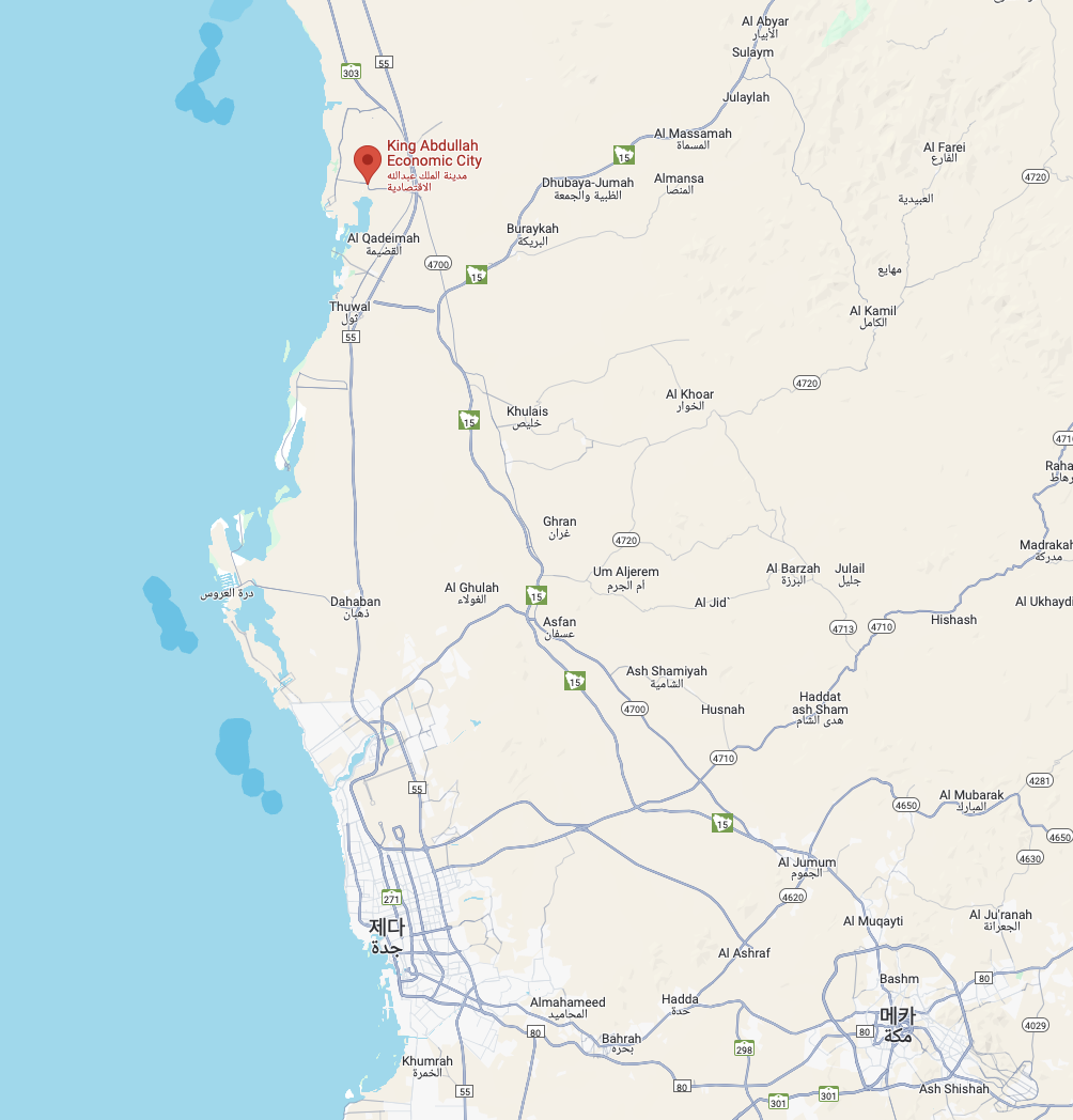 현대차 공장이 들어서게 될 킹 압둘라 경제도시는 젯다에서 북쪽으로 100여km 떨어진 곳에 자리 잡은 도시입니다.